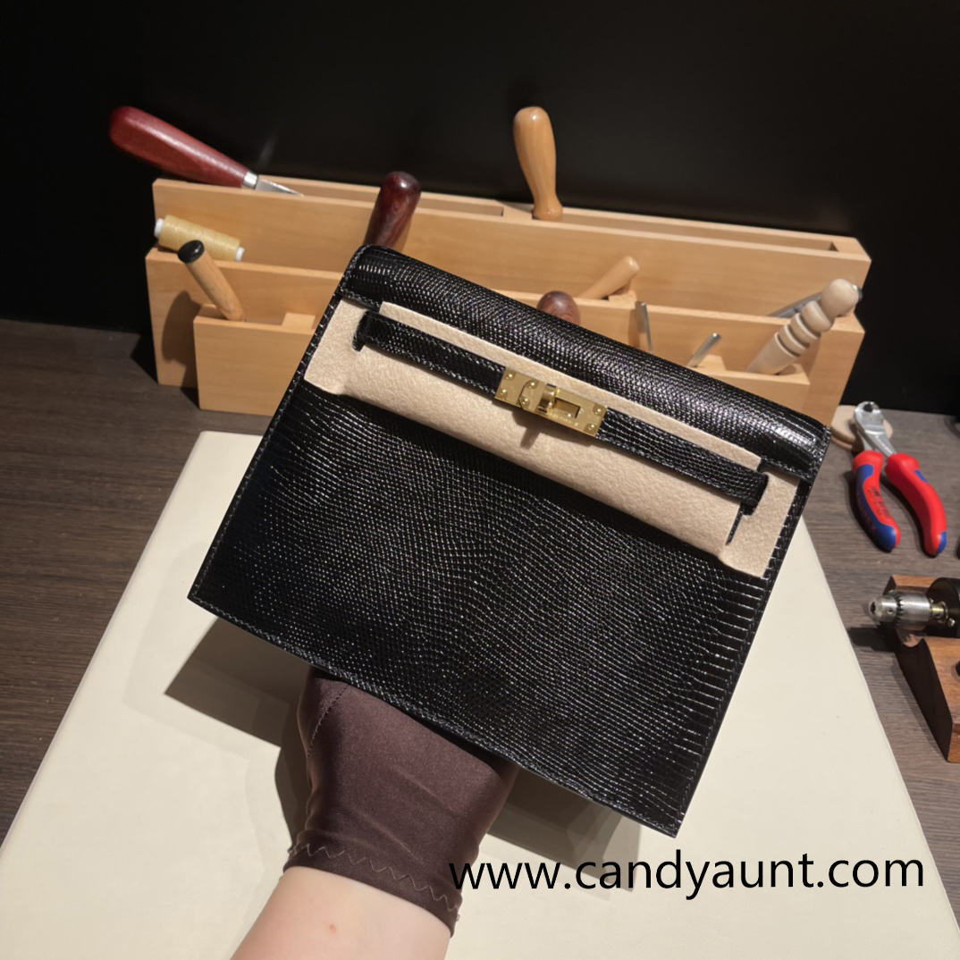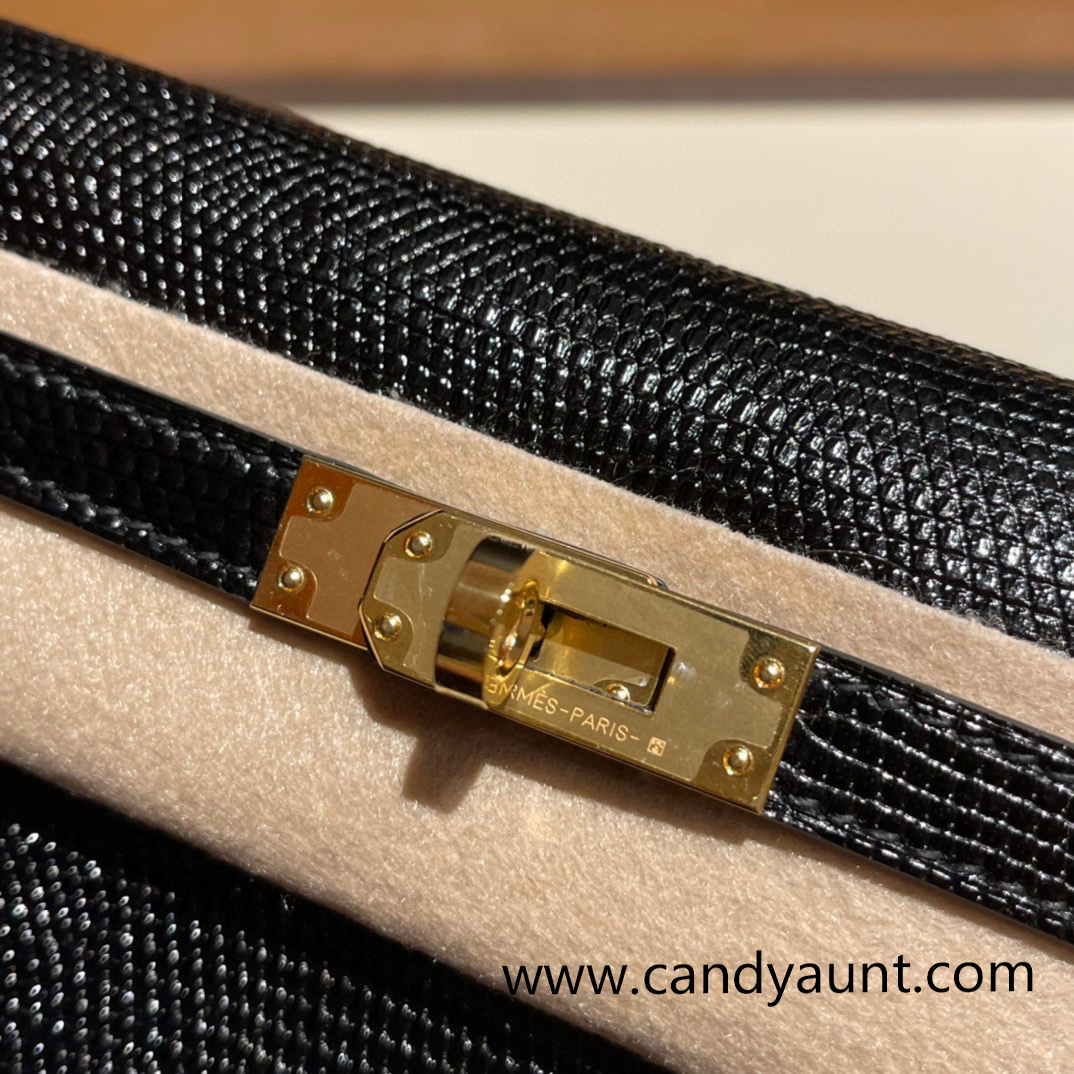 Hermes Kelly danse Lizard 89 /Black (Noir)Gold Hardware
