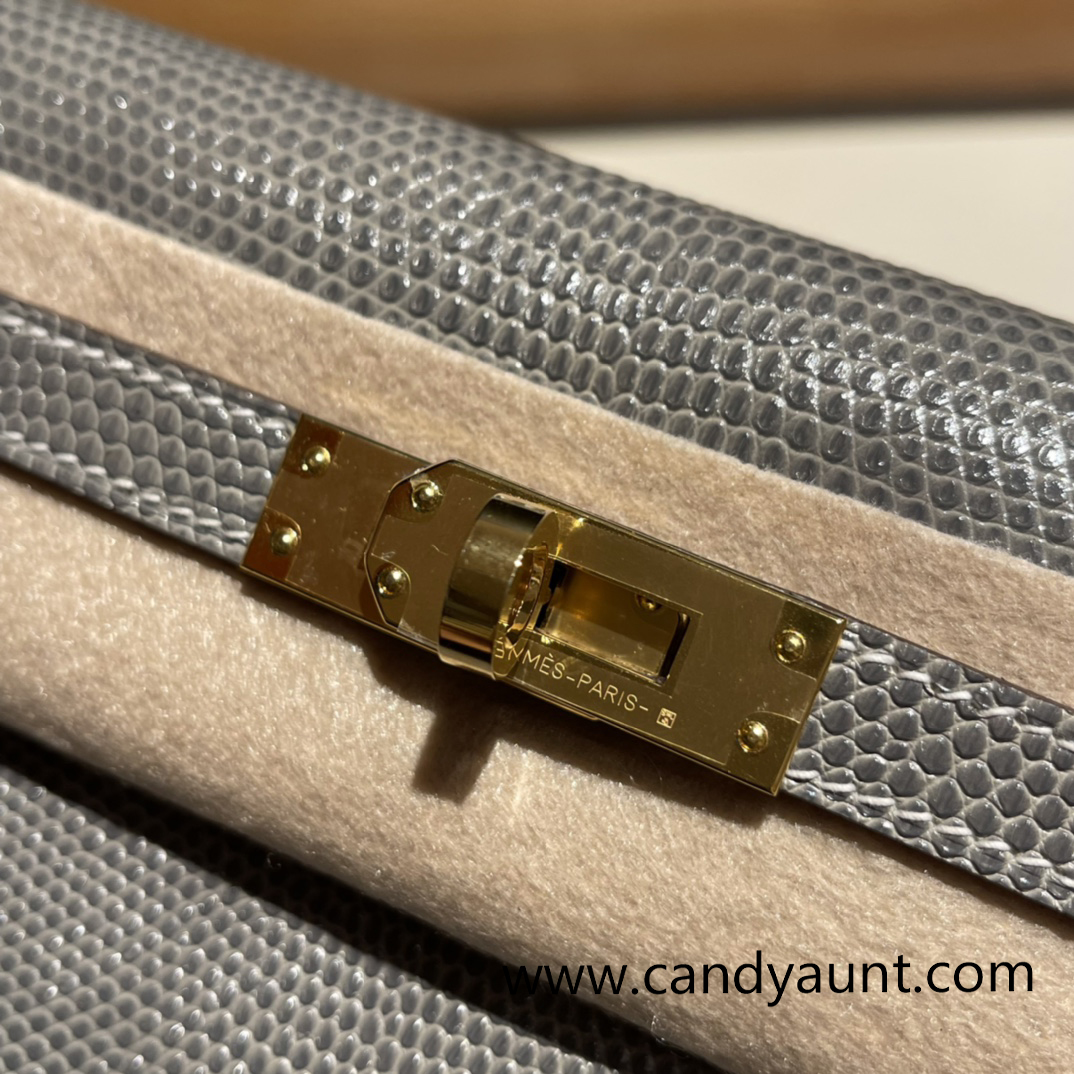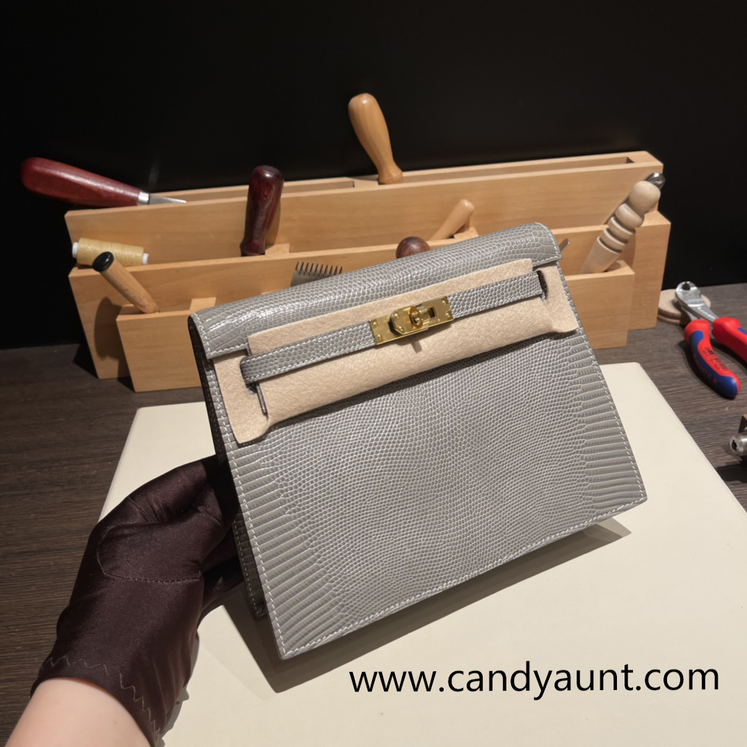 Hermes Kelly danse Lizard 8F /Etain Gold Hardware