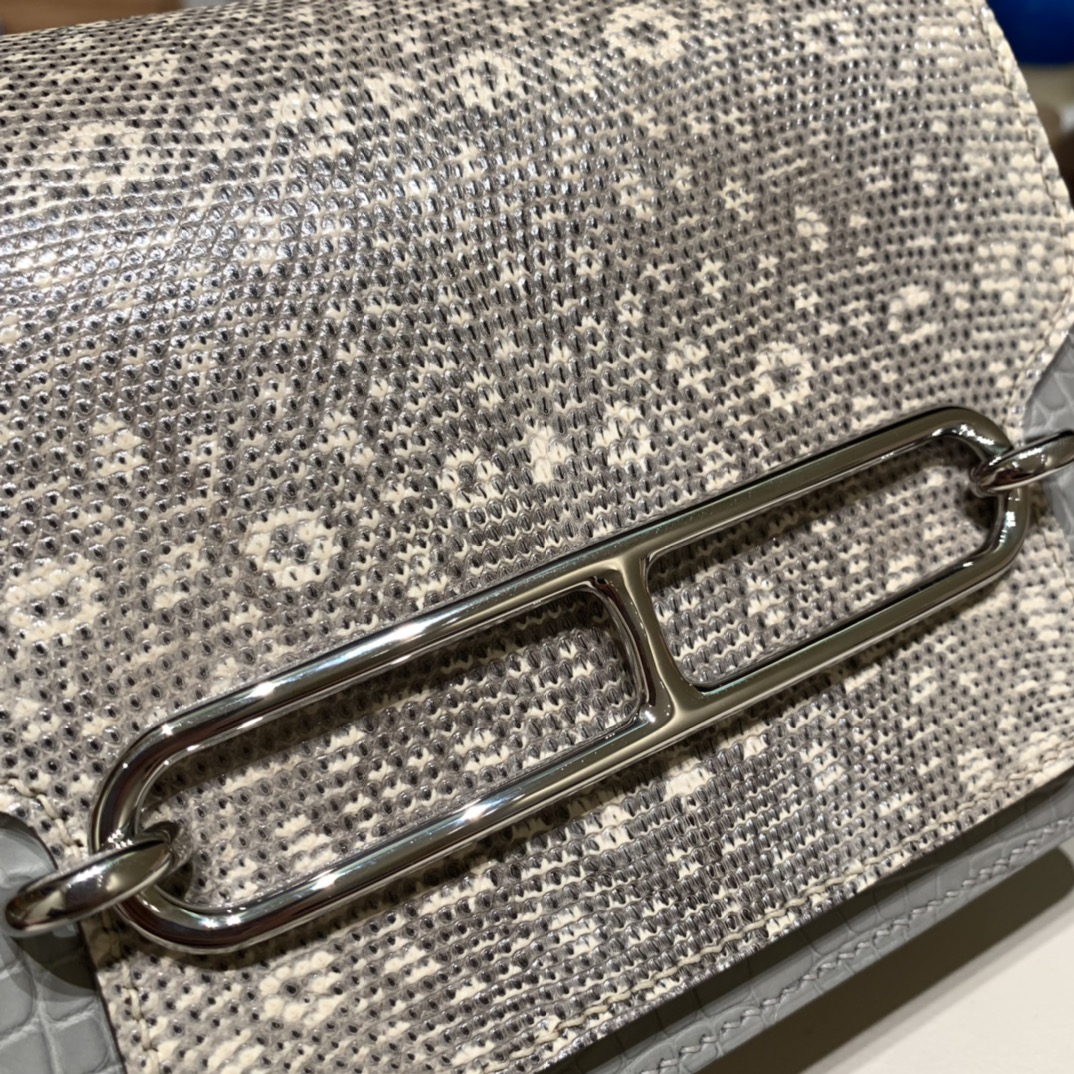 Hermès Roulis 19cm Crocodile Alligator & Natural Lizard 80/Pearl Grey X Ombre Silver Hardware Roulis-025 Fully Hand-Stitched