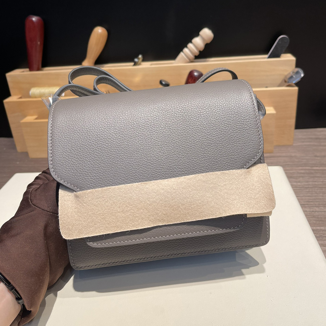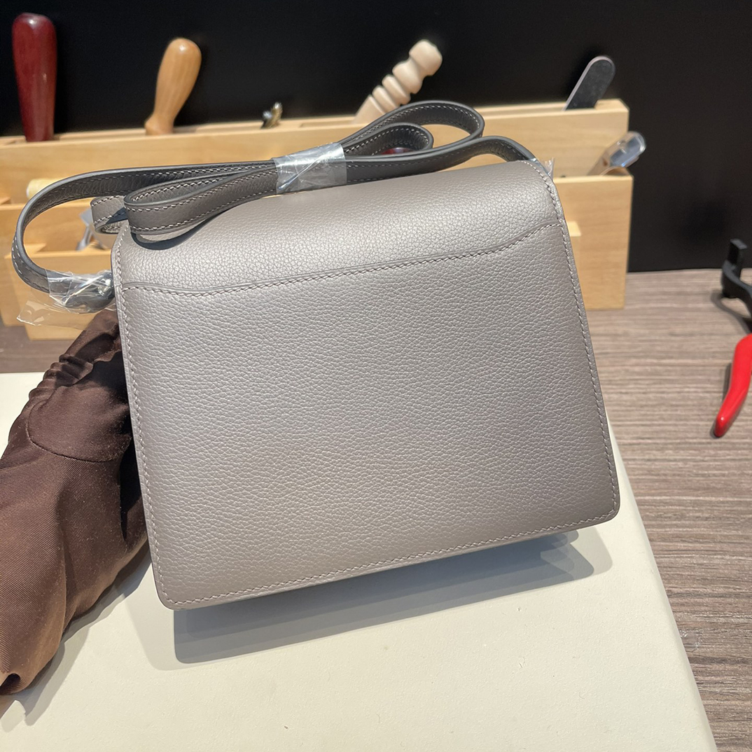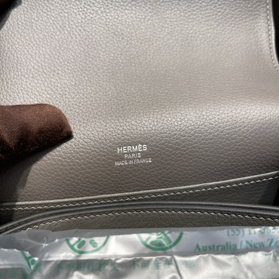Hermès Roulis 19cm Evercolor 8F/Etain Silver Hardware Roulis-029 Fully Hand-Stitched