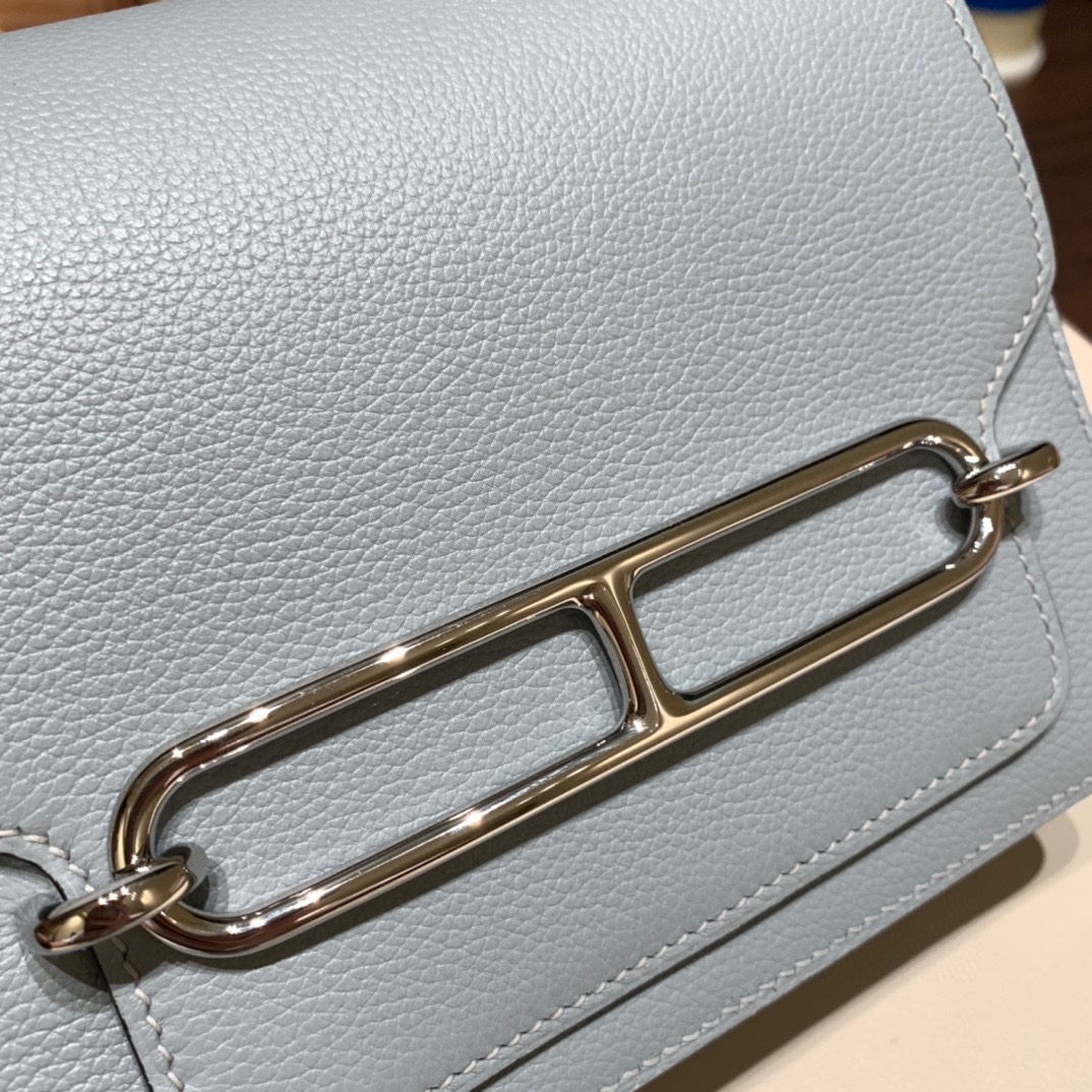 Hermès Roulis 19cm Evercolor Blue Glacier Silver Hardware Roulis-041 Fully Hand-Stitched
