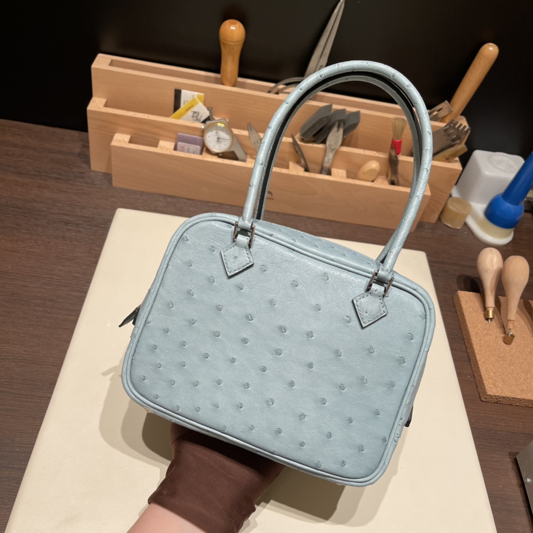 Hermès Plume 21 Ostrich 8U/Blue Glacier Silver Hardware Plume-005 Fully Hand-Stitched