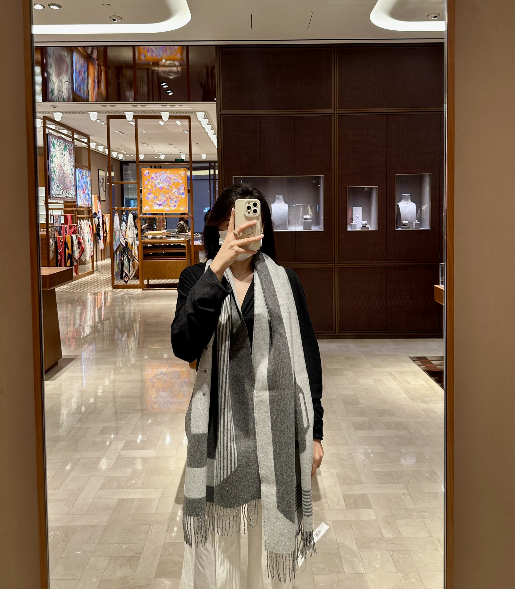新品サドルストラップ(鞍帯)cashmereスカーフ:ジオメトリック柄で騎士スタイルを凝縮し、ジャガード編み工芸を採用。エルメス特有の「騎士」テーマのスカーフデザインを取り入れ、生き生きとした馬術風を立体的に表現しています。柄はシンプルかつ大気なデザインで、男性女性問わず使用可能で、クールな印象を与えます。「1.1 オーダーメイドレベル」の精緻な工芸を誇り、着用すると全体の OOTD(今日のコーディネート)の高級感を一気に引き上げます!