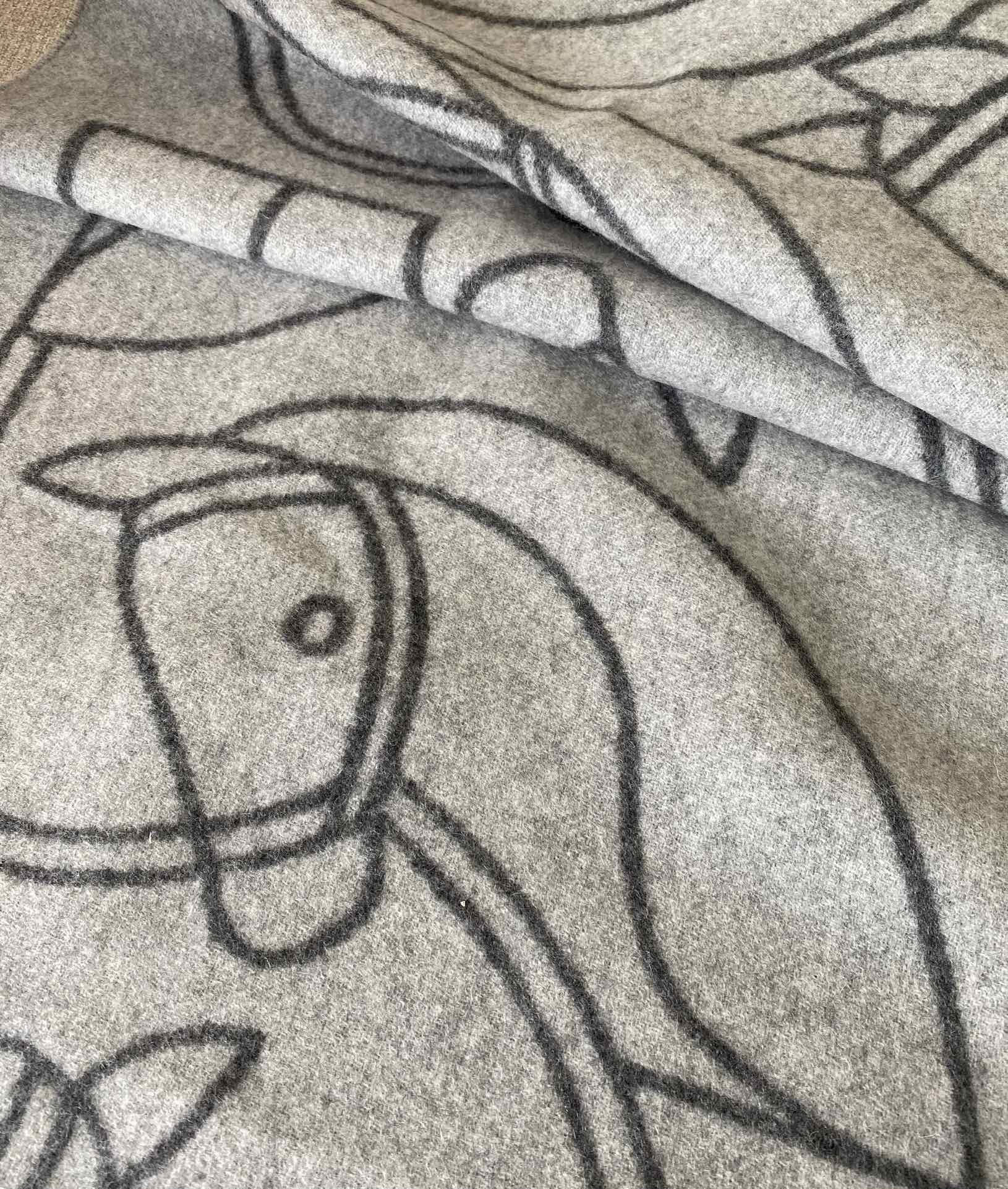 本スカーフはダブルサイド配色となっています。濃いグレーの面は紳士的な渋い雰囲気を醸し出し、ホワイトの面は高級感あふれる柔らかいトーンを呈しています。ジェフ・マックフェトリッジ(Geoff McFetridge)がデザインした「馬術インターリーブ」モチーフは、緻密なカラーブロックジャガード編みで表現され、優美でシンプルなラインが一層芸術的な雰囲気を高めています。保温性に優れた分厚い純cashmere素材を使用し、サイズも大きく実用性が高いユニセックスモデルで、男性も女性も着用可能です。