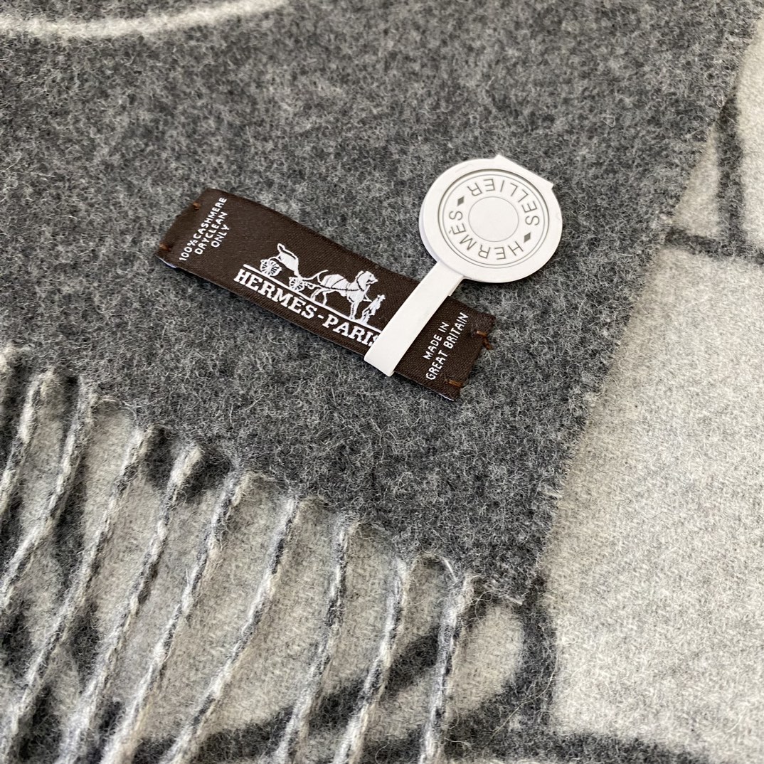 Hermes ・New "Equestrian Interleave Cashmere Scarf・Gray & White