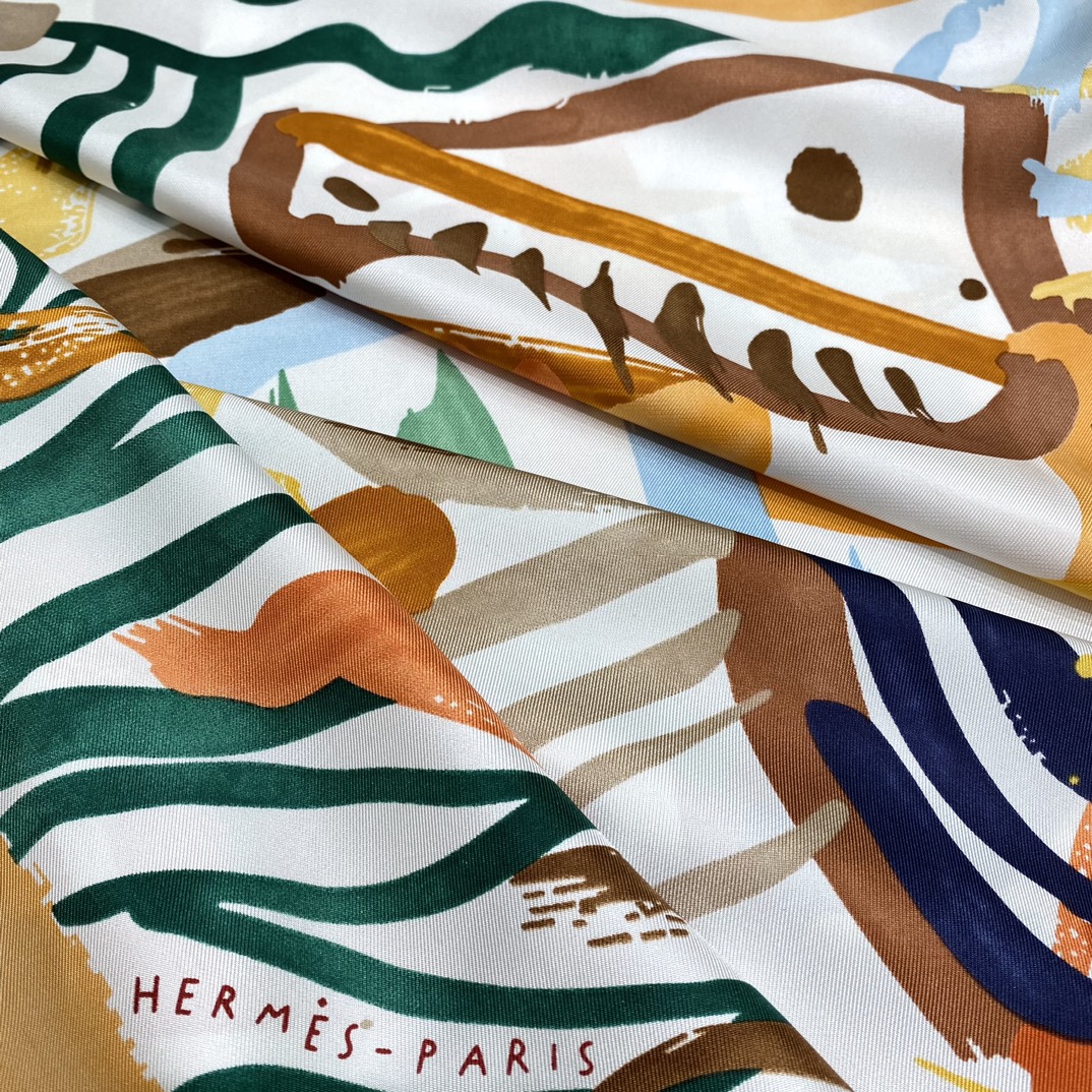 オリジナルスペックの生地を使用!精緻な手作業による縁かがりを施し、配色は高級感あふれるデザインで❤️デザイン内容が鮮明、ラインの存在感も強い特徴を持ちます!デザインのインスピレーションは、中世の写本(マニュスクリプト)、愛と戦争をテーマにした叙情詩の手稿(手書き原稿)、さらに 1960 年代に世界的に評価の高かったポーランドのポスターから得られています。21 世紀の「騎士詩人」として、デザイナーは太く、まるで子供のような天真烂漫な筆致で輪郭を描き、このスカーフに明るく陽気な雰囲気を添えています。