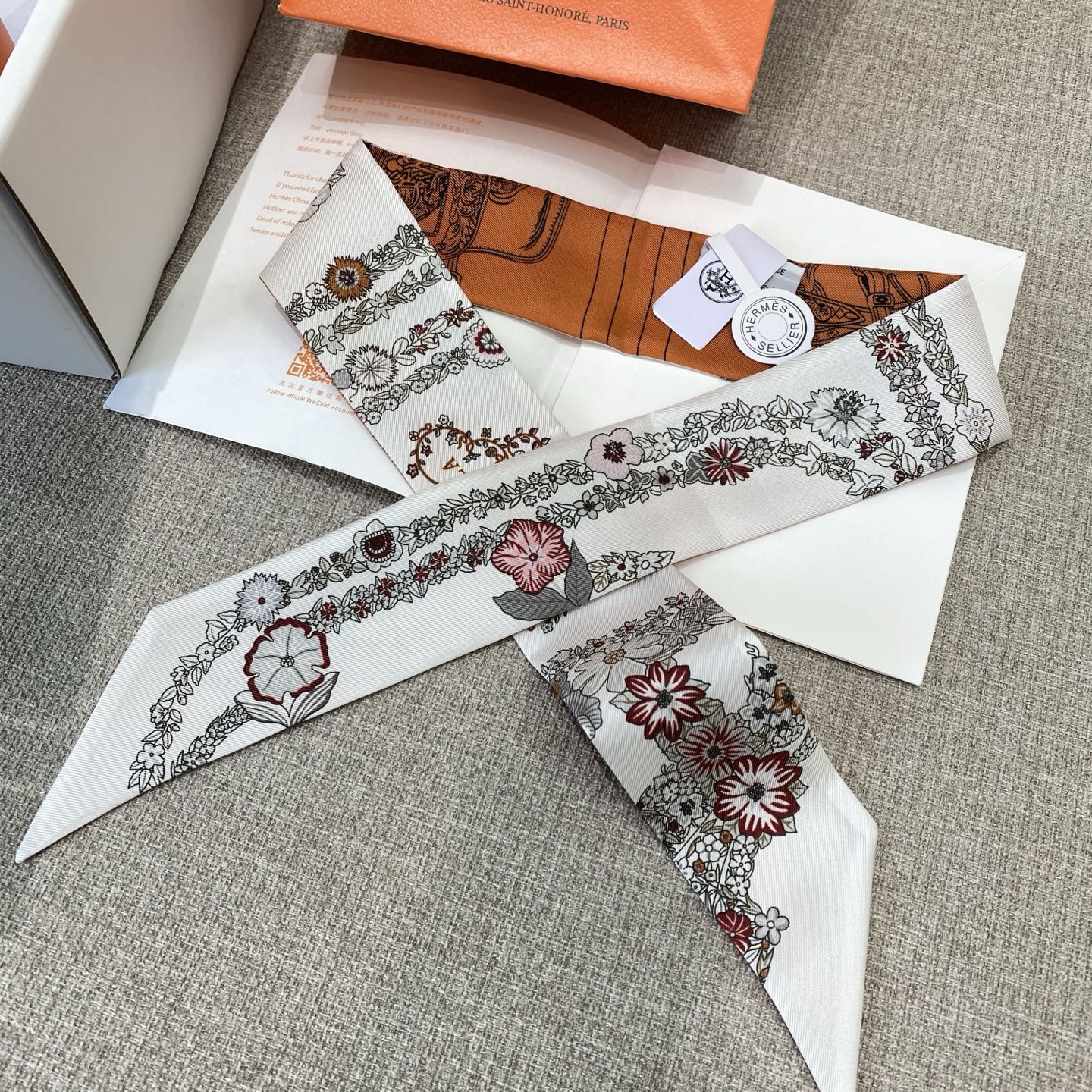 Hermes Gorgeous Rein Flower Version Twilly Small Scarf