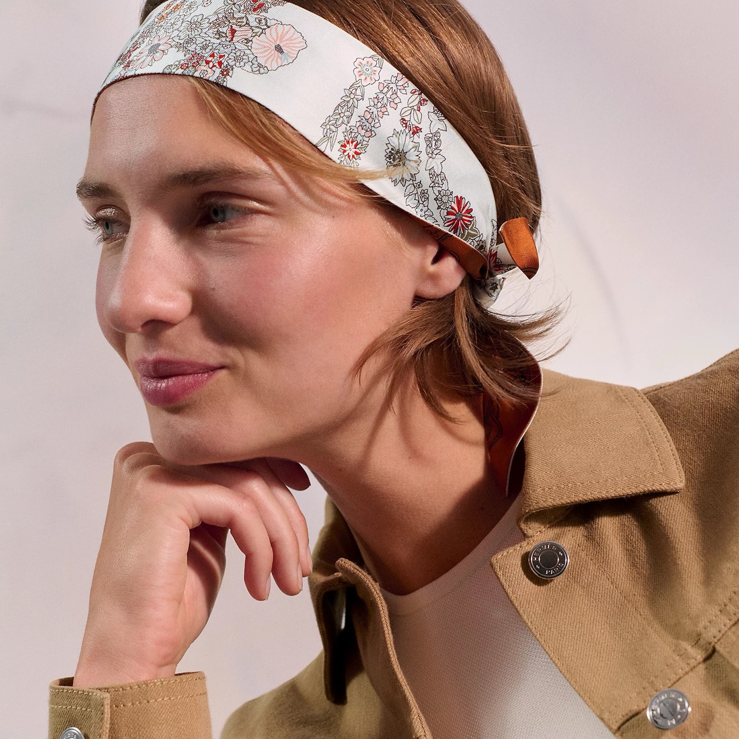「華やかな手綱フラワーバージョン」スカーフのデザインからインスピレーションを受けて制作された本スカーフは、「華やかな手綱」の原柄を再構想し、フラワー(花卉)とフルーツ(水果)で原版デザインのラインを描き出しています。クリスティーヌ・アンリー(Christine Henry)とユーゴー・グリガール(Hugo Grygkar)の創造的な才がここで融合しています。ワスレナグサ(勿忘我)、ハイビスカス(木槿花)、フヨウ(芙蓉花)と、ブルーベリー(蓝莓)、イチジクの木(无花果树)が交互に組み合わさり、心を打つ田園交響曲を奏でています。馬術用のバックルストラップ(马术扣带)と手綱(鞍辔)はまるで芳香を放つ花や果物の香りを漂わせ、華やかな色彩で春の訪れを迎え、詩情あふれる大自然の景色を美しく表現しています。