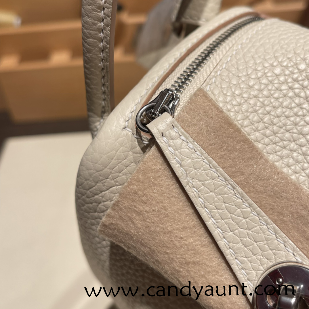 Hermes Mini Lindy Clemence10 /Craie Silver Hardware 035