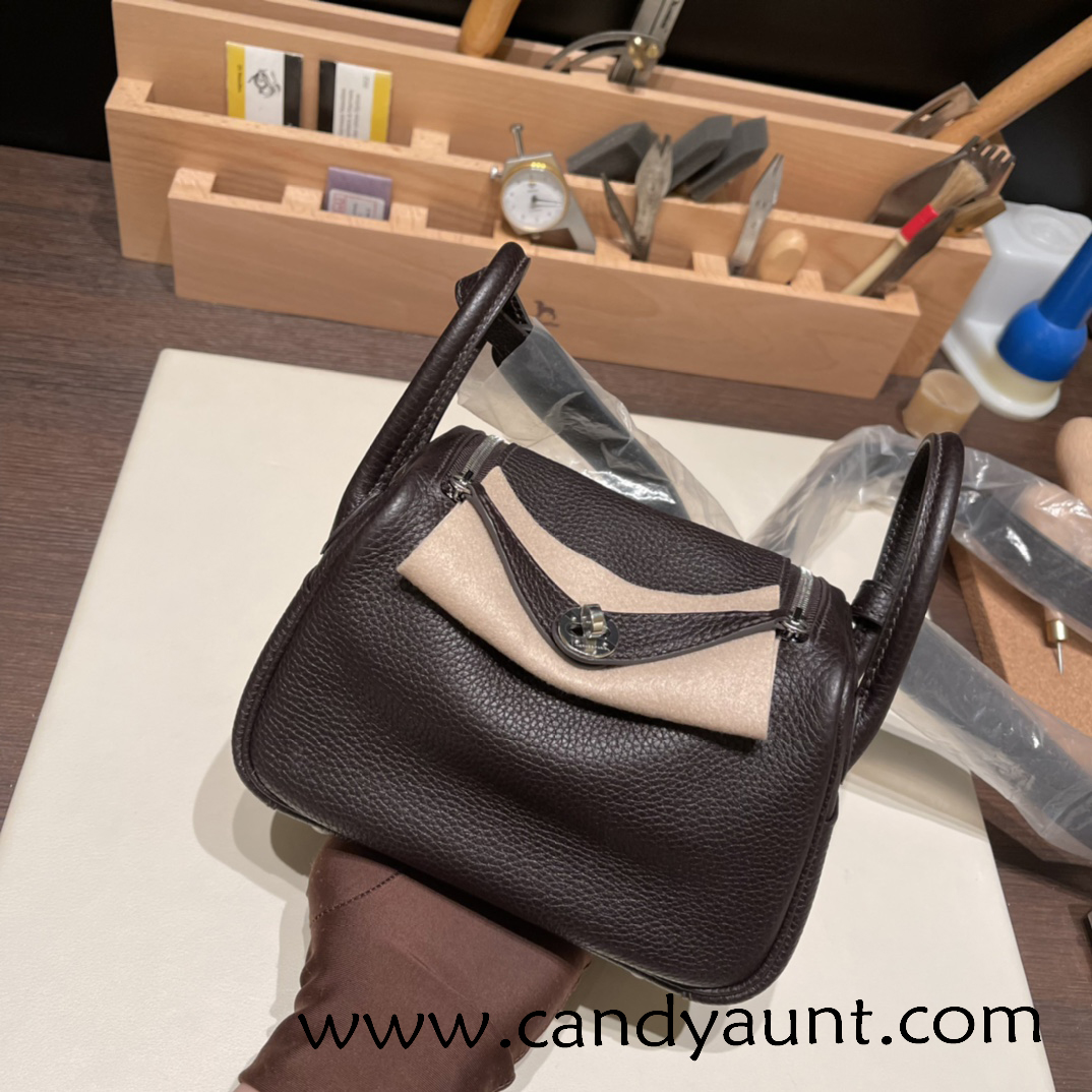 Hermes Mini Lindy Clemence 46 /Ebene Silver Hardware 070