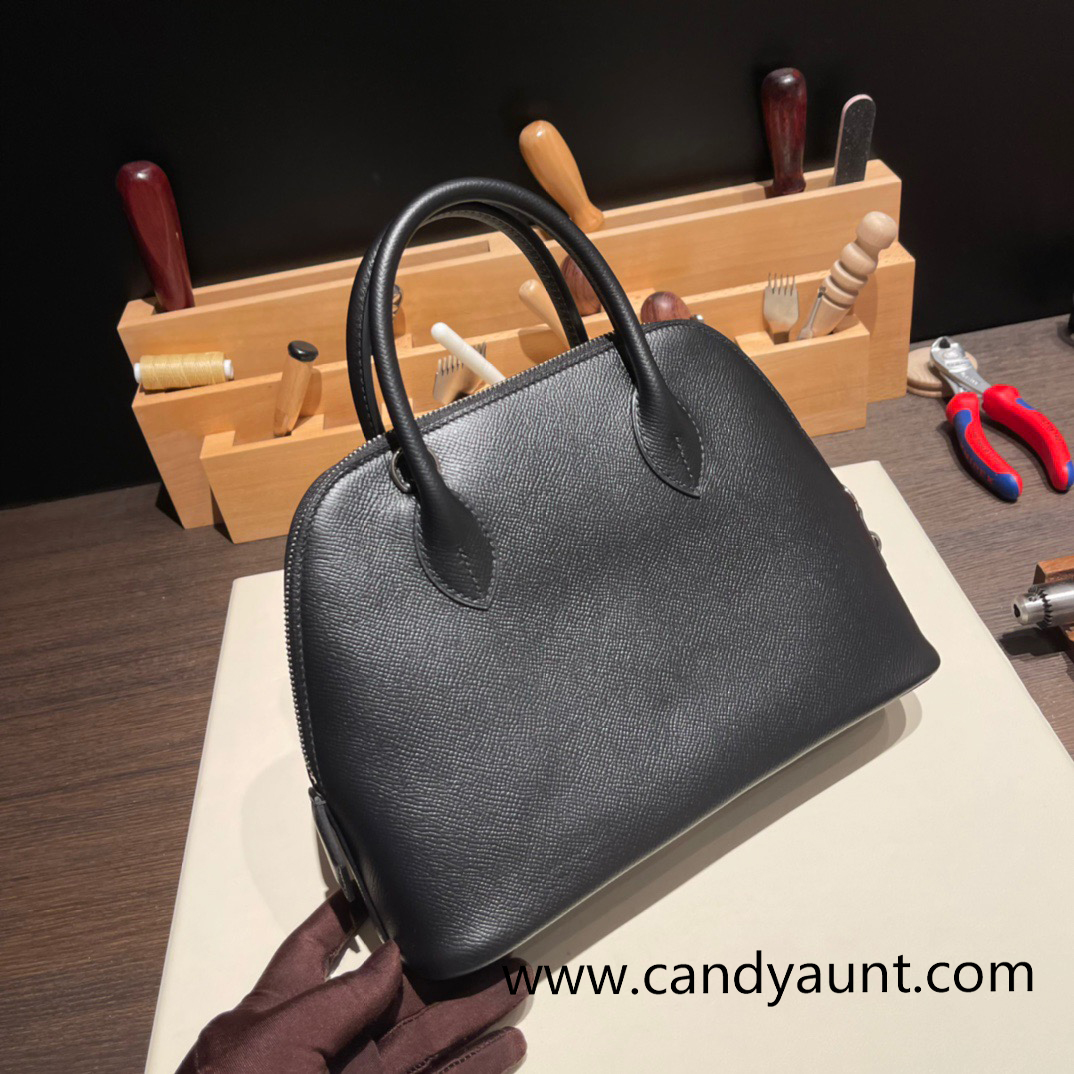 Hermes 25cm bolide Epsom 89 /Black (Noir) Full Handmade Silver Hardware003