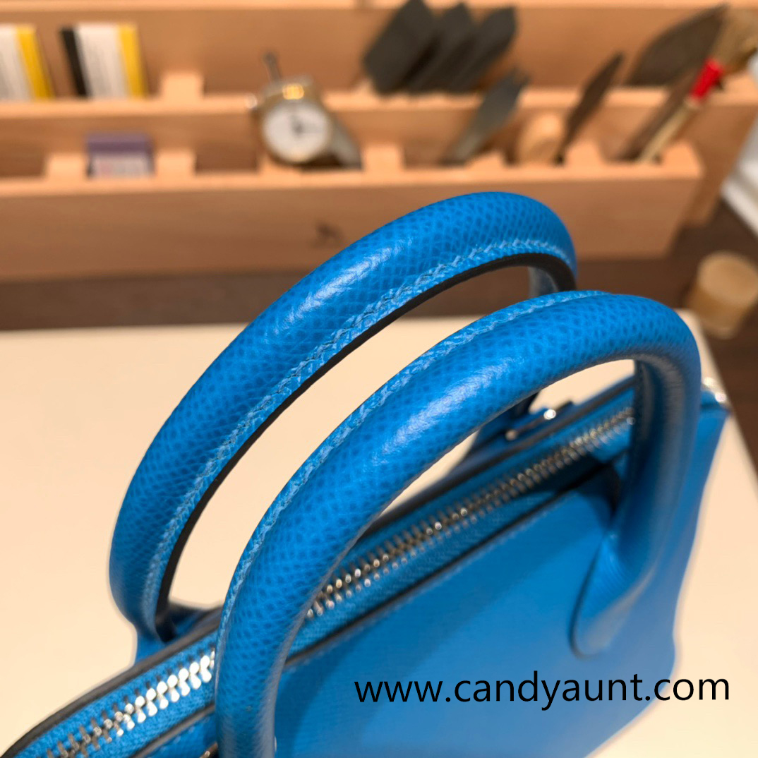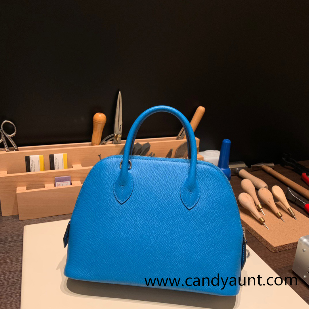 Hermes 25cm bolide Epsom B3 /Blue Zanzibar Full Handmade Silver Hardware022