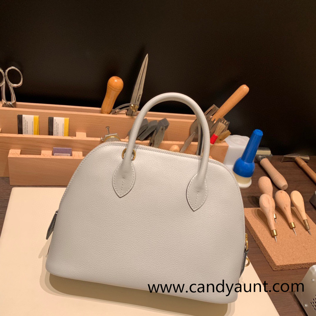 Hermes 25cm bolide evercolor 4Z /Gris Mouette Full Handmade Gold Hardware 019