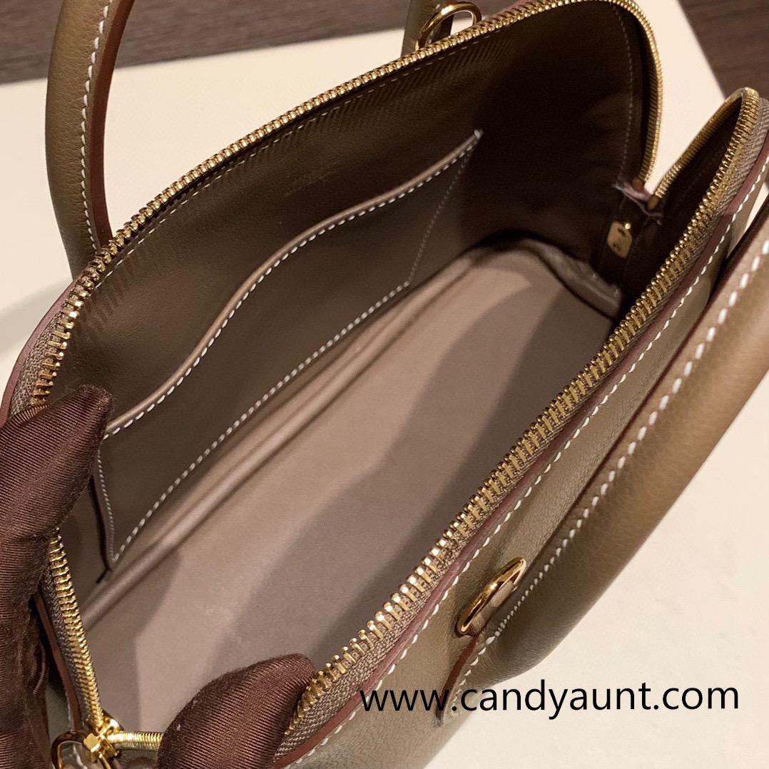 Hermes 25cm bolide evercolor 18 /Étoupe Grey (Étoupe) Full Handmade Gold Hardware026