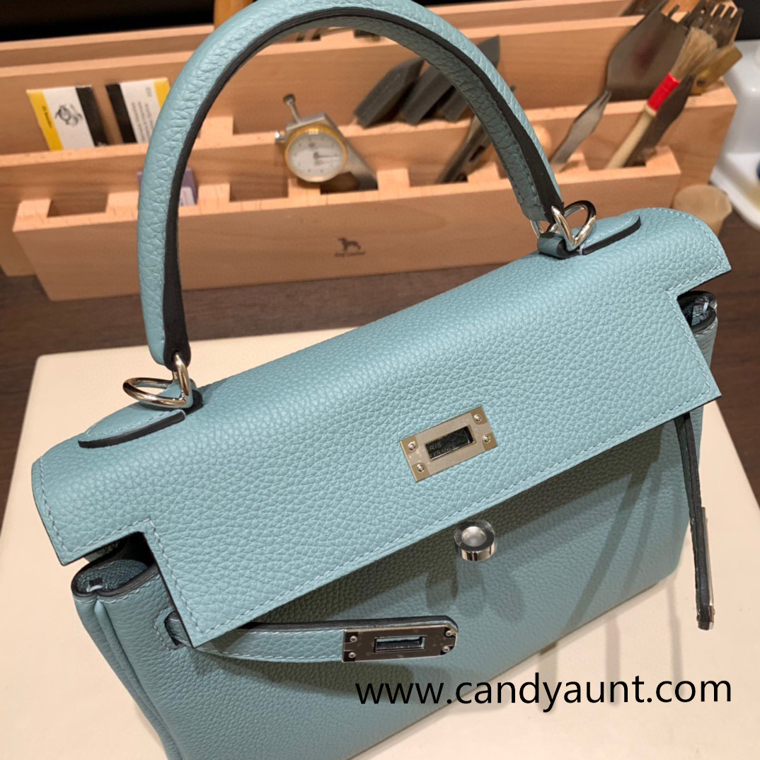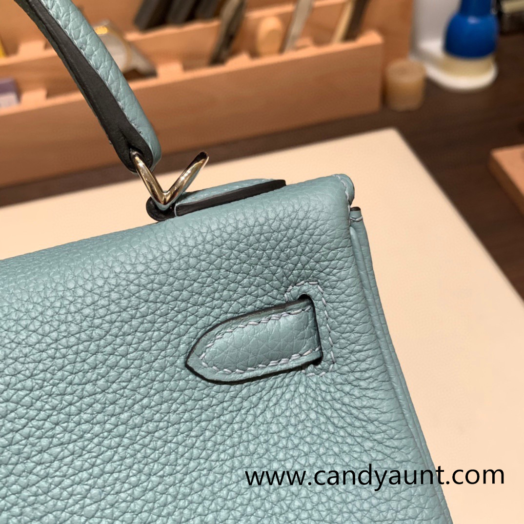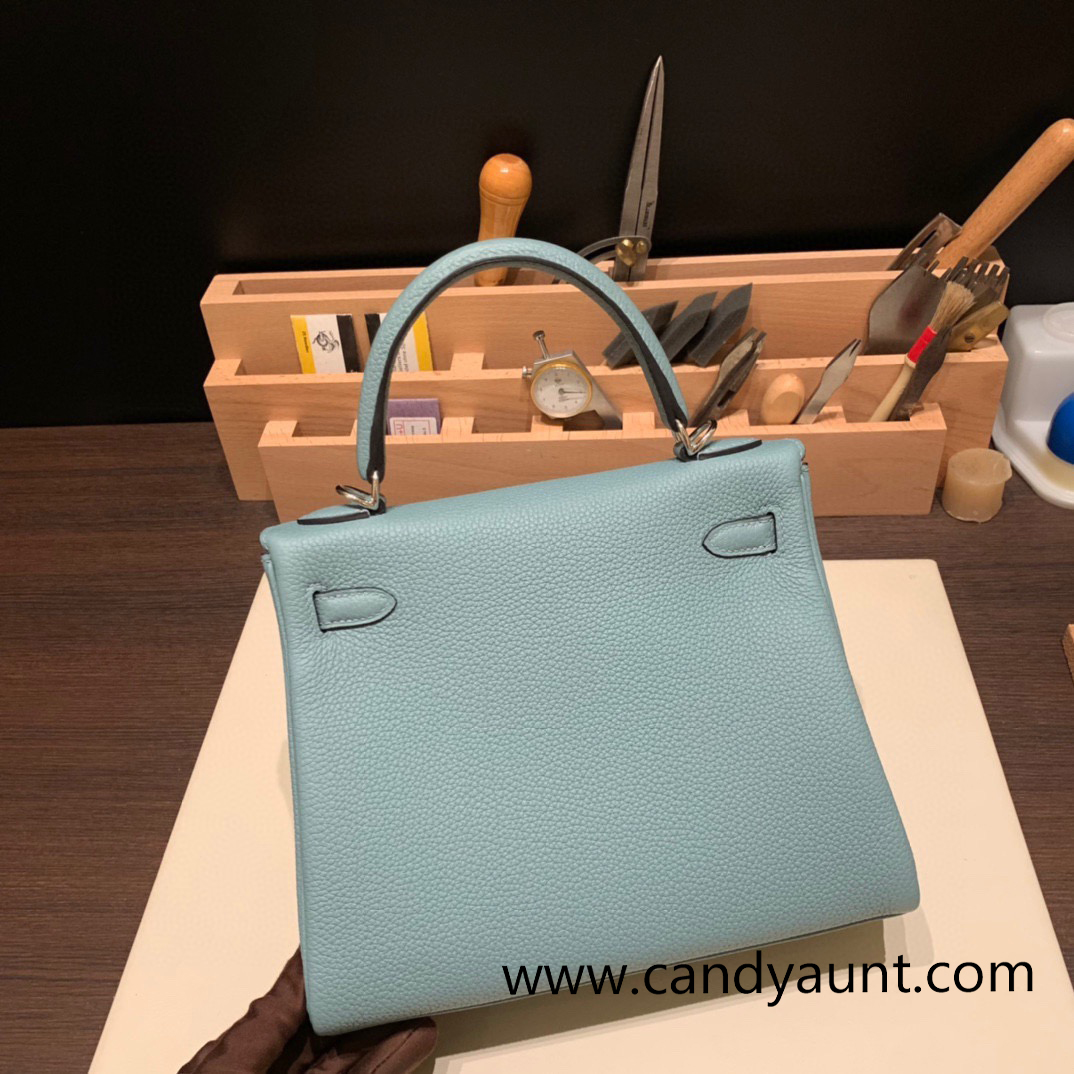 Hermes Kelly 25cm togo 7G / Ciel Silver Hardware Full Handmade 024
