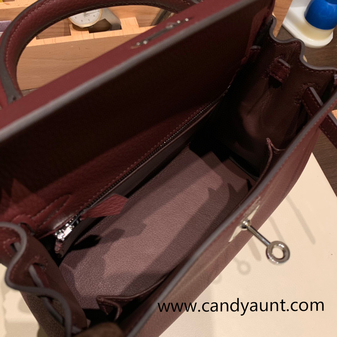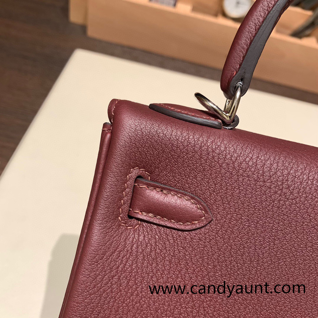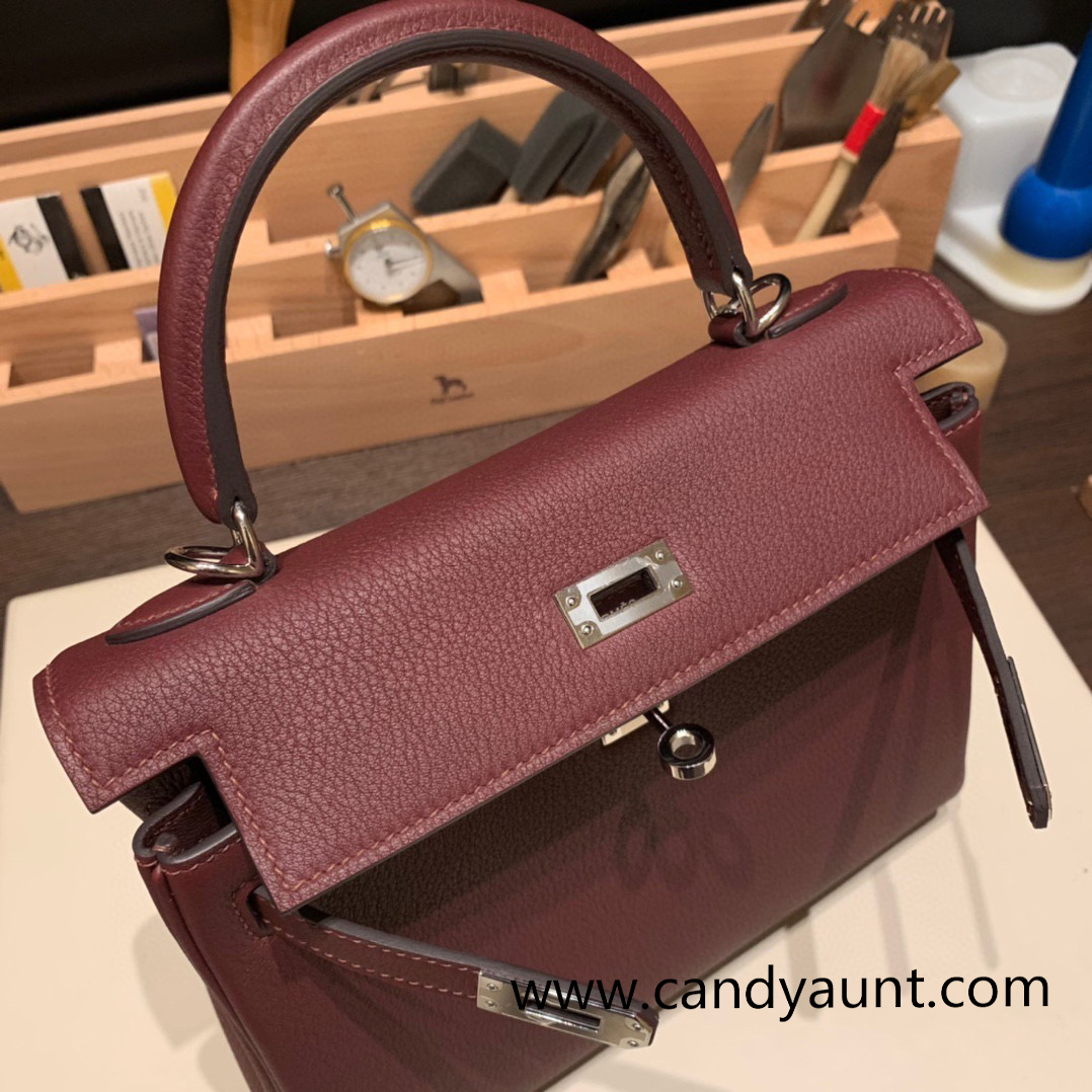 Hermes Kelly 25cm togo 57 /Bordeaux Silver Hardware Full Handmade 032