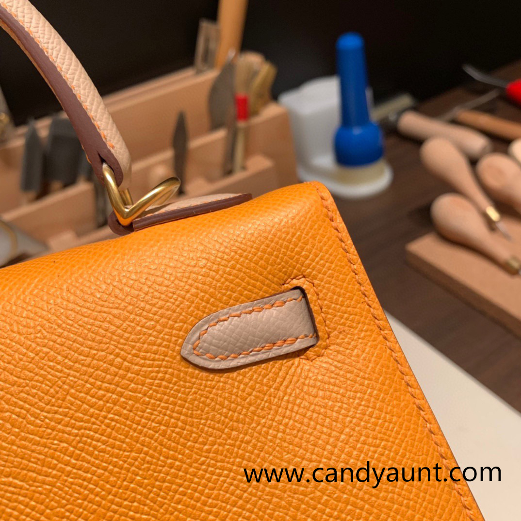 Hermes Kelly 25cm sellier Epsom touch 9H/Soleil & P1 /Rose Eglantine Gold Hardware Full Handmade 061