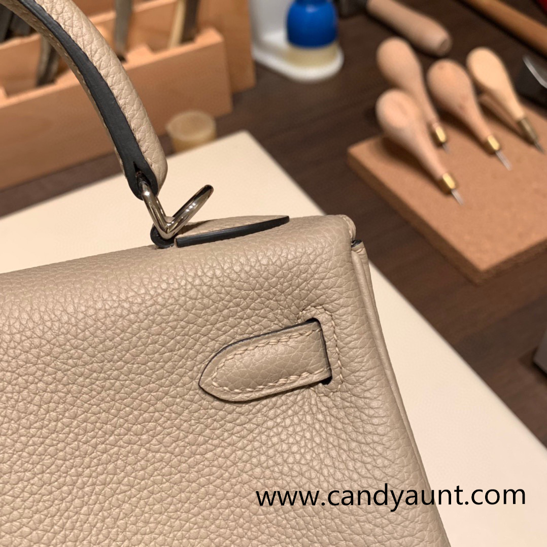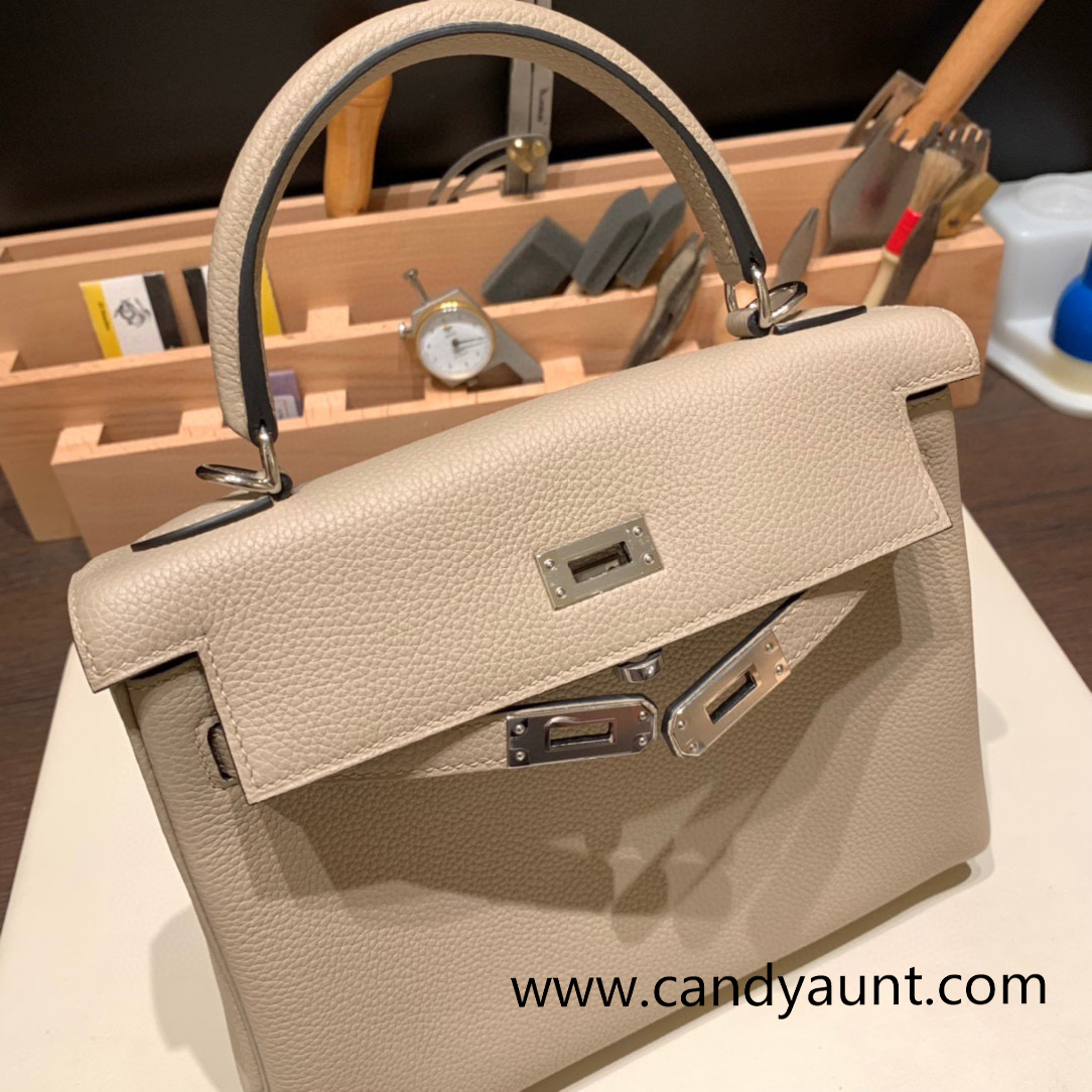 Hermes Kelly 25cm togo 81 / Gris Tourterelle Silver Hardware Full Handmade 118