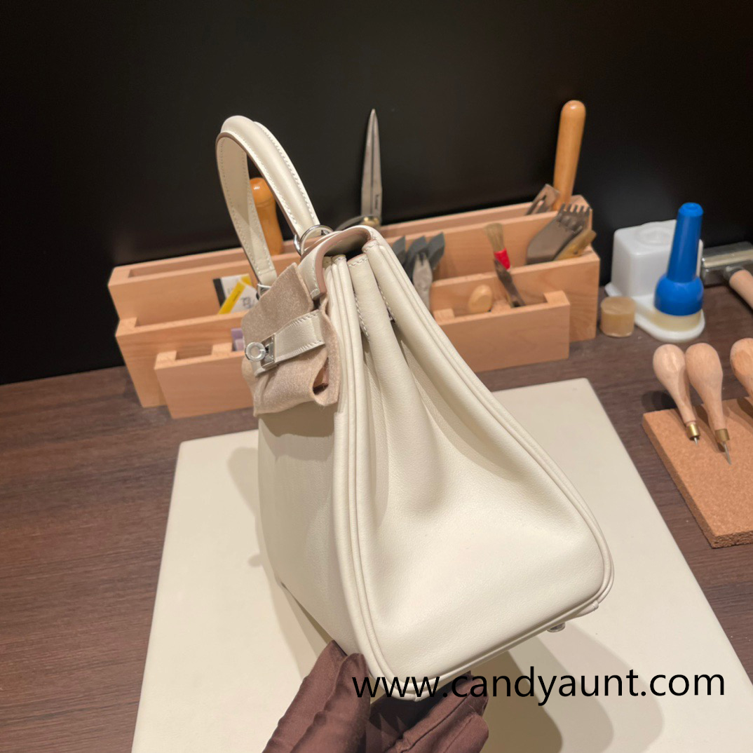 Hermes Kelly 28CM swift 10 /Craie swift SilverHardware FullHandmade 004