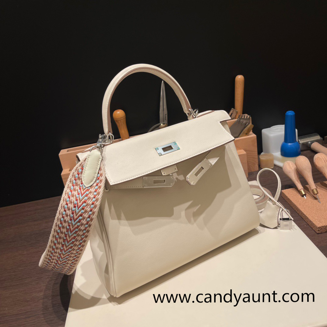 Hermes Kelly 28CM swift 10 /Craie swift SilverHardware FullHandmade