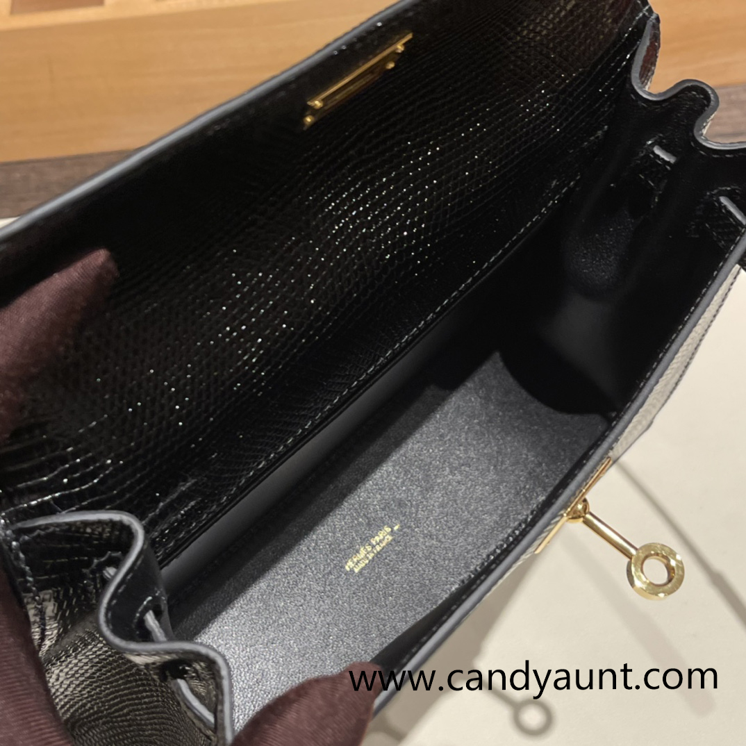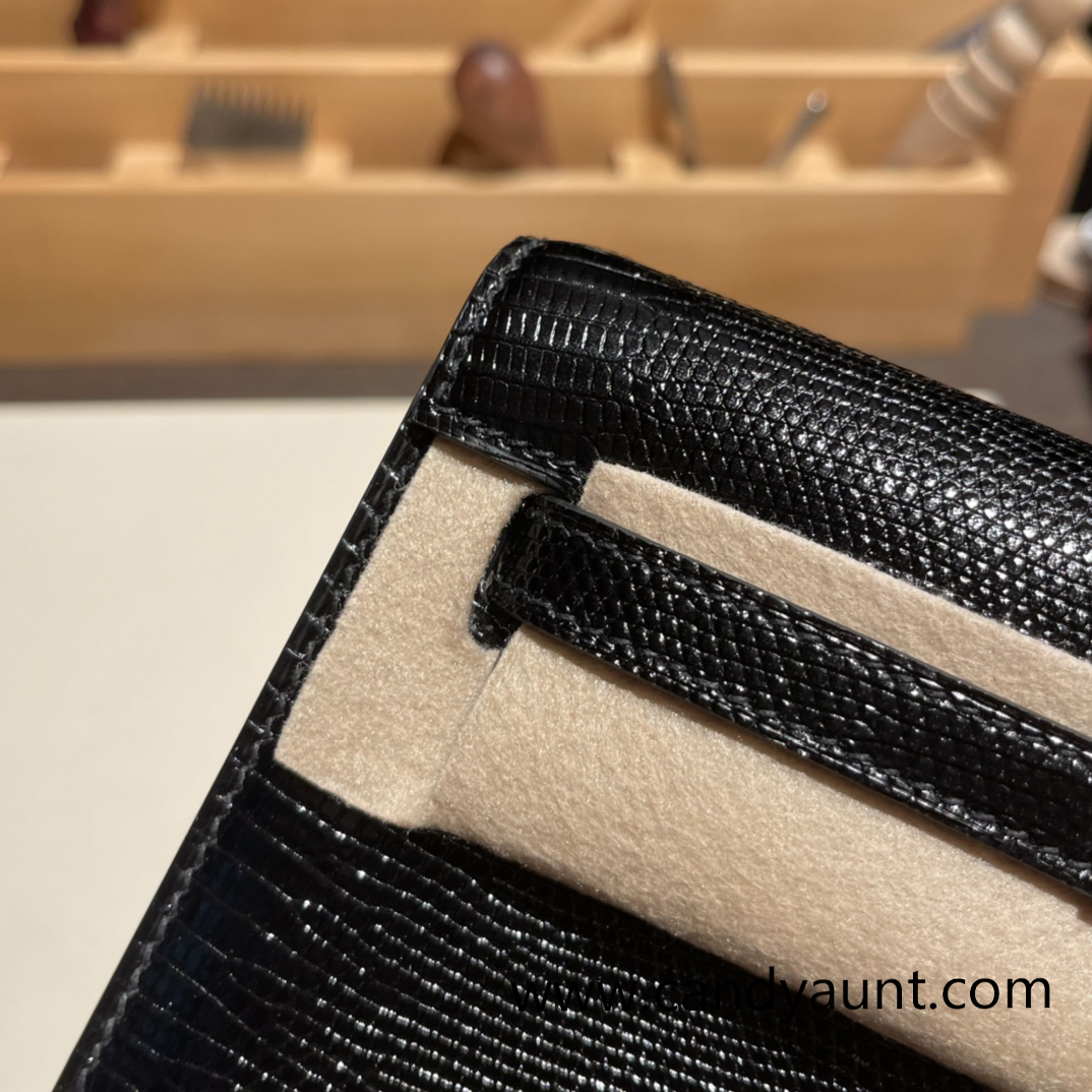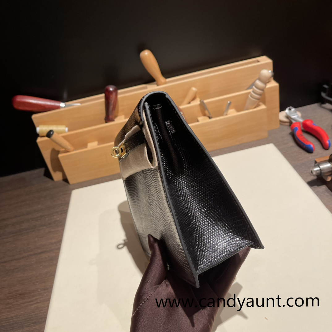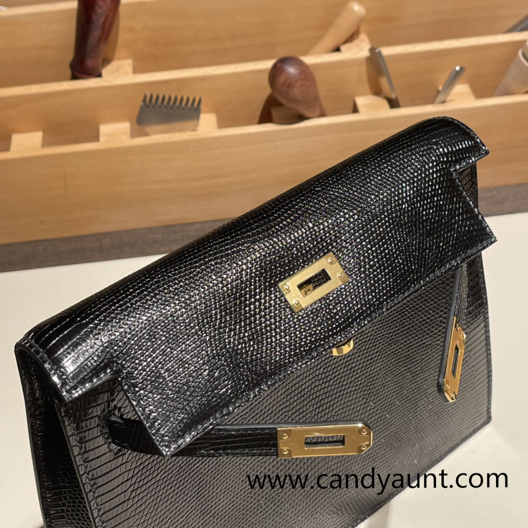 Hermes Kelly danse Lizard 89 /Black (Noir)Gold Hardware