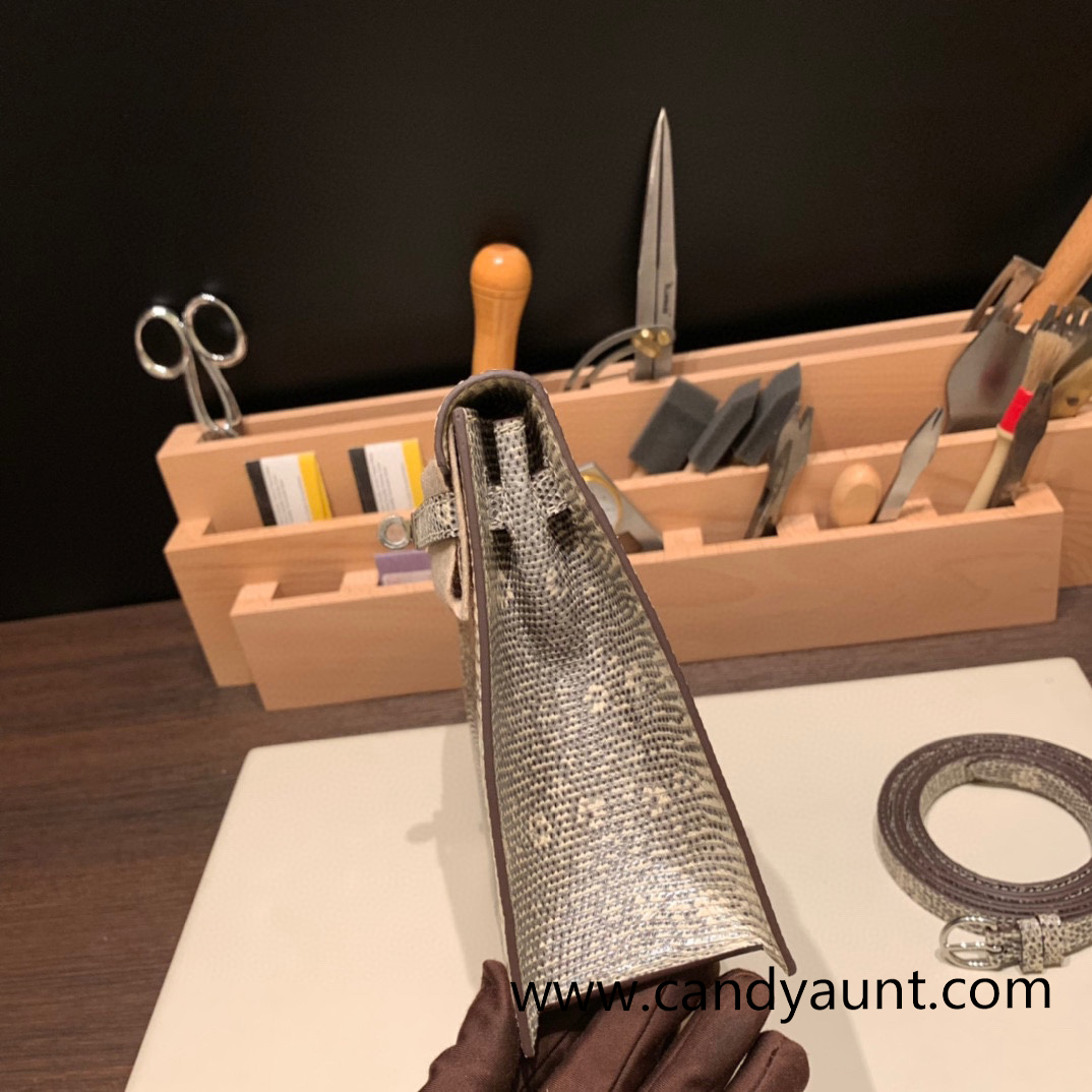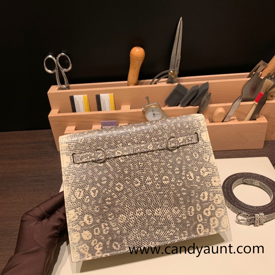 Hermes Kelly danse Lizard M8/Gris Asphalt Silver Hardware