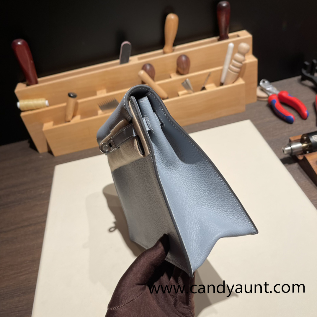 Hermes Kelly danse Evercolor J7 /Blue Lin Silver Hardware