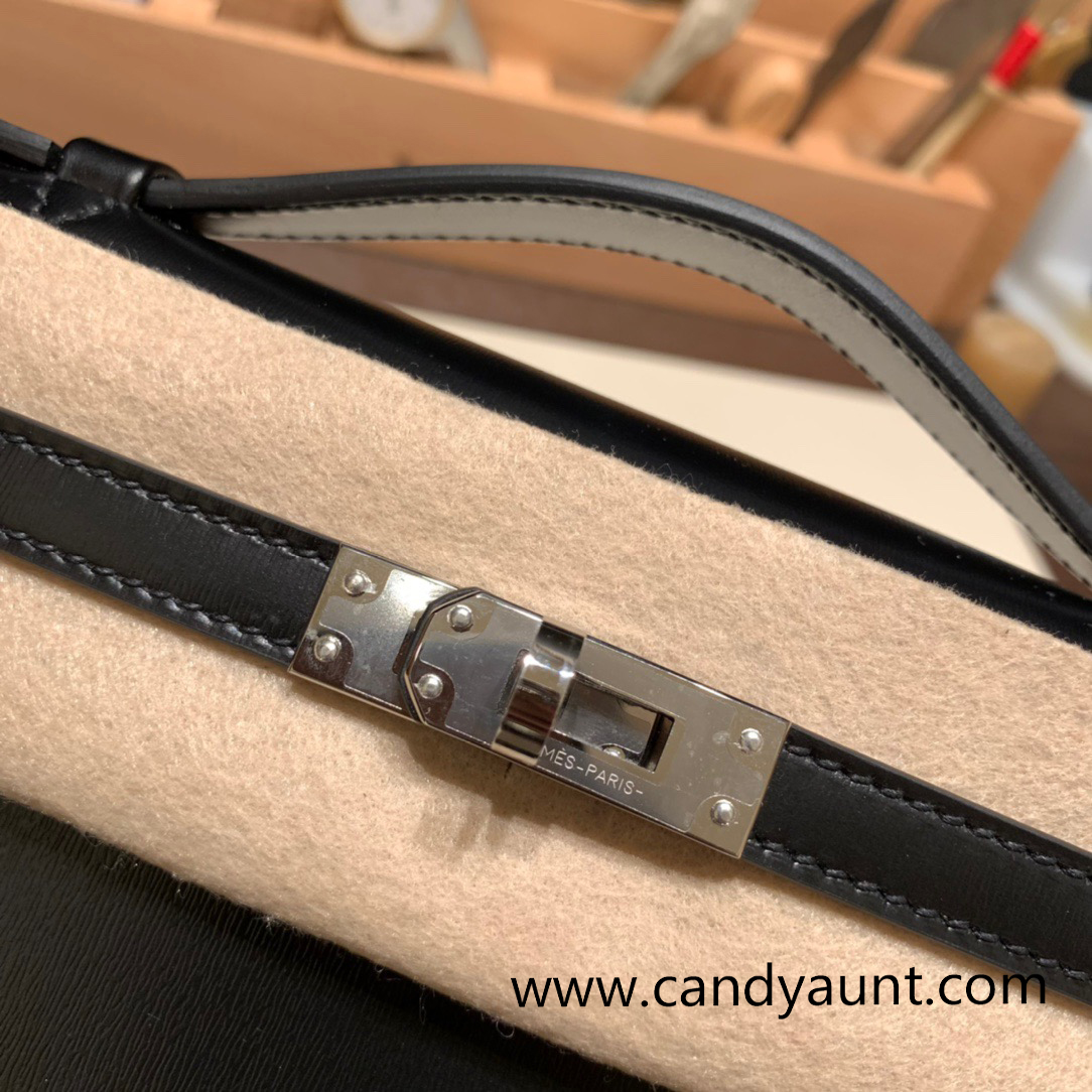 89/ Black (Noir) Silver Hardware  kelly pochette  box