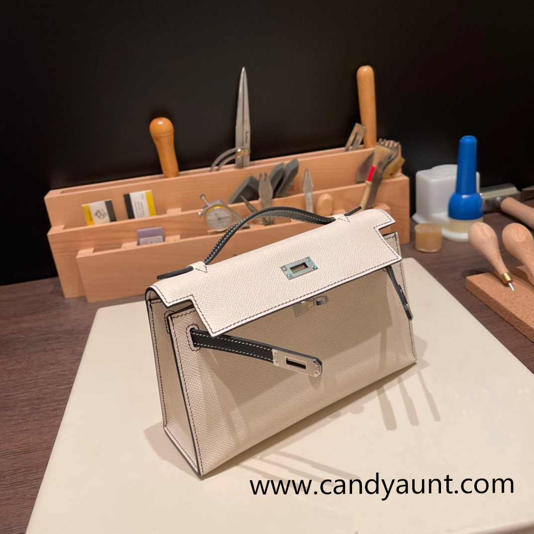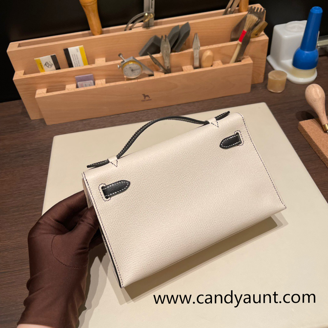 10/ Craie & ブラック 89 /Black (Noir) Silver Hardware  kelly pochette  Epsom