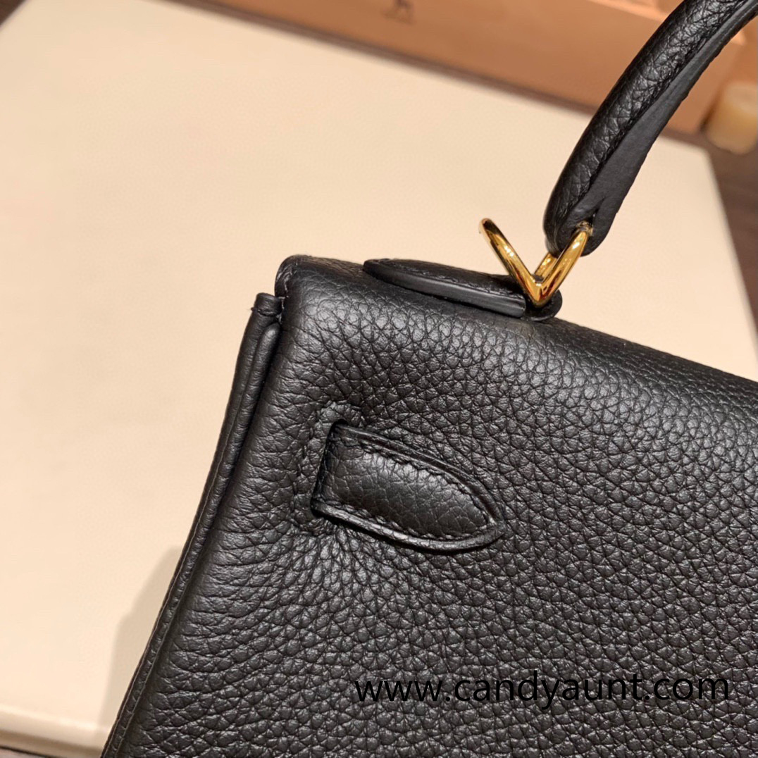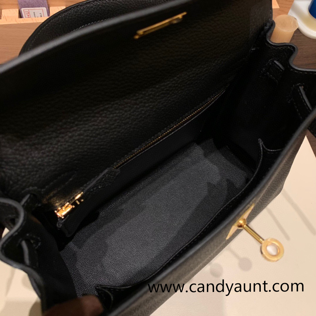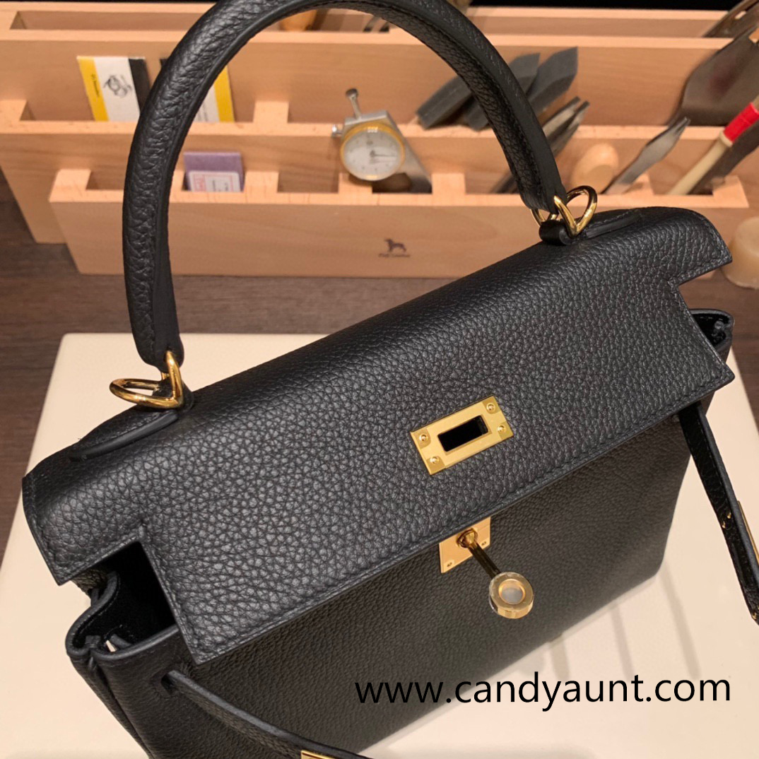 Hermes Kelly 25cm togo 89 /Black Gold Hardware Full Handmade 020