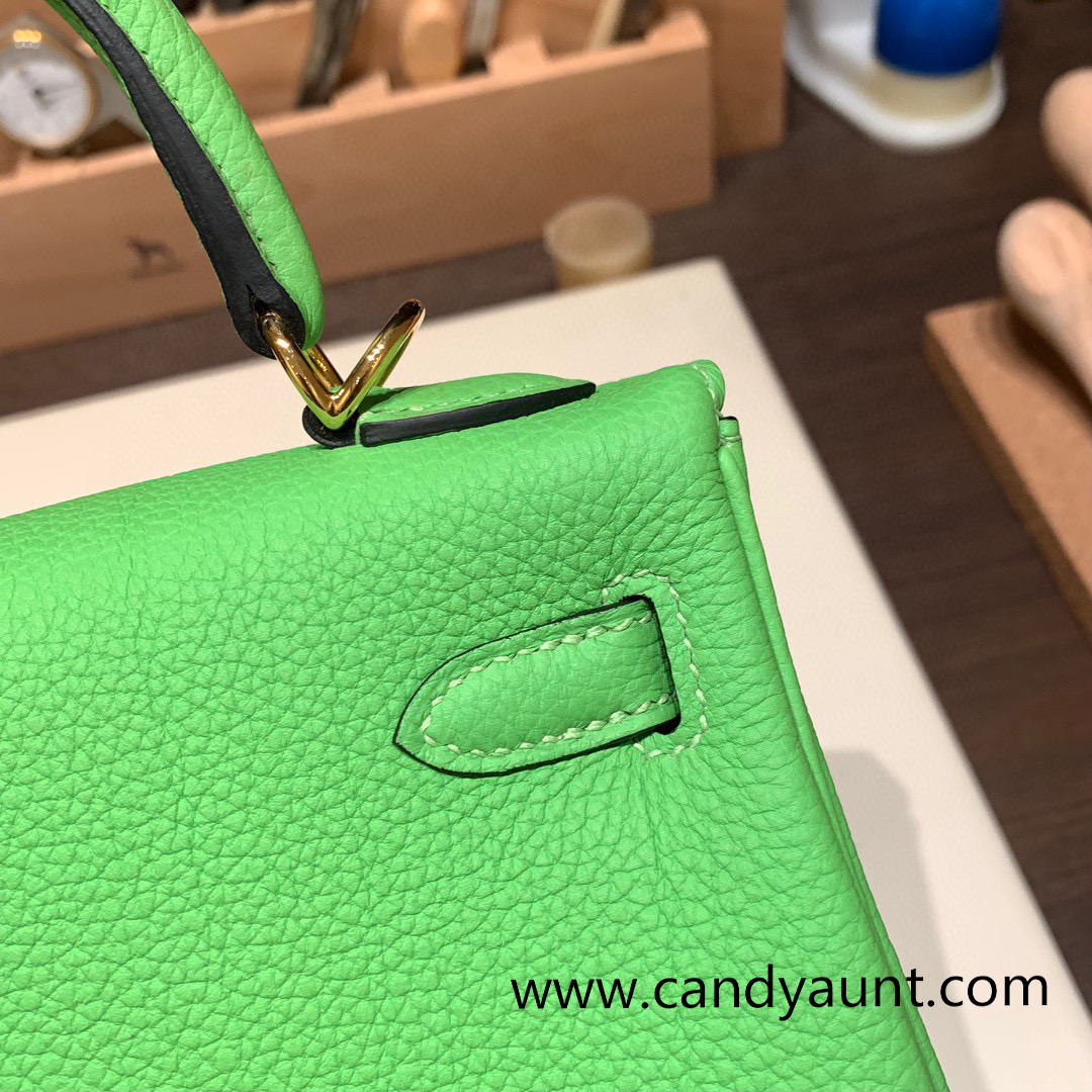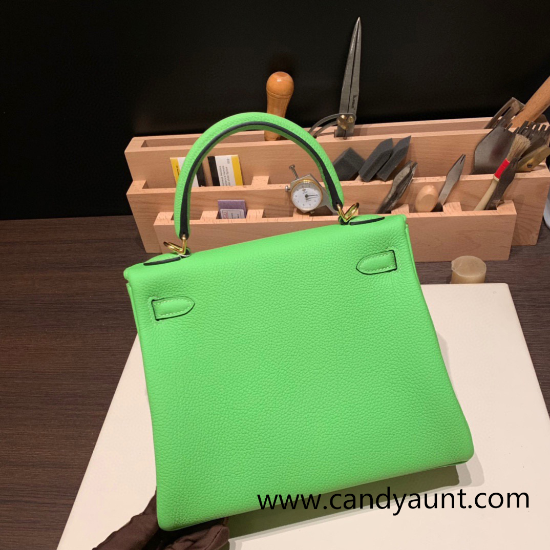 Hermes Kelly 25cm togo 6R/ Kiwi Gold Hardware Full Handmade 035