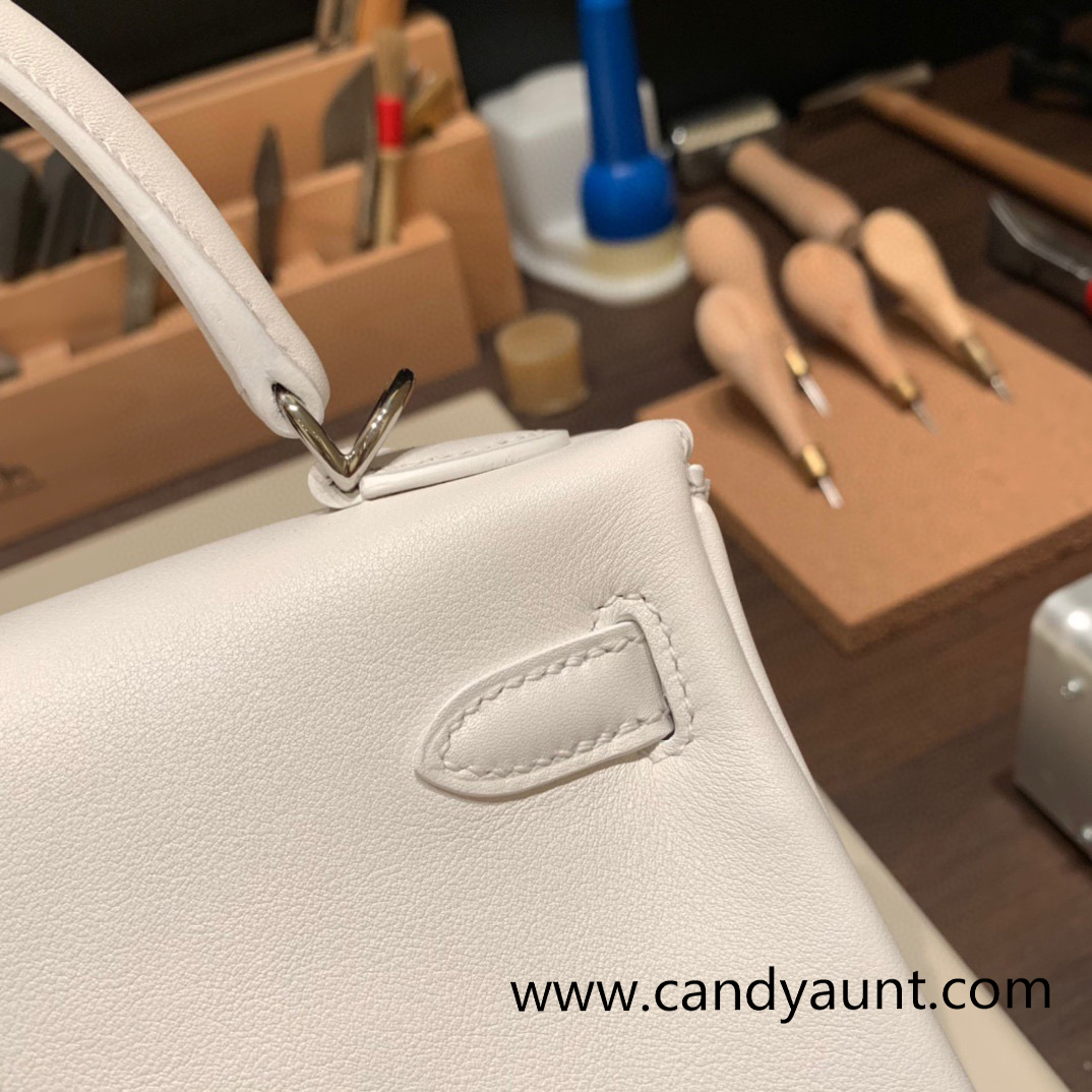 Hermes Kelly 25cm swift 01 /White (Blanc) Silver Hardware Full Handmade 047