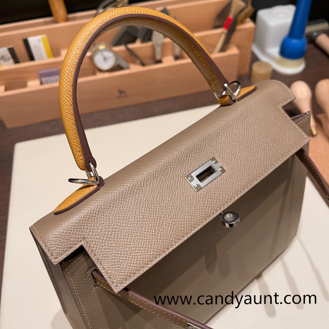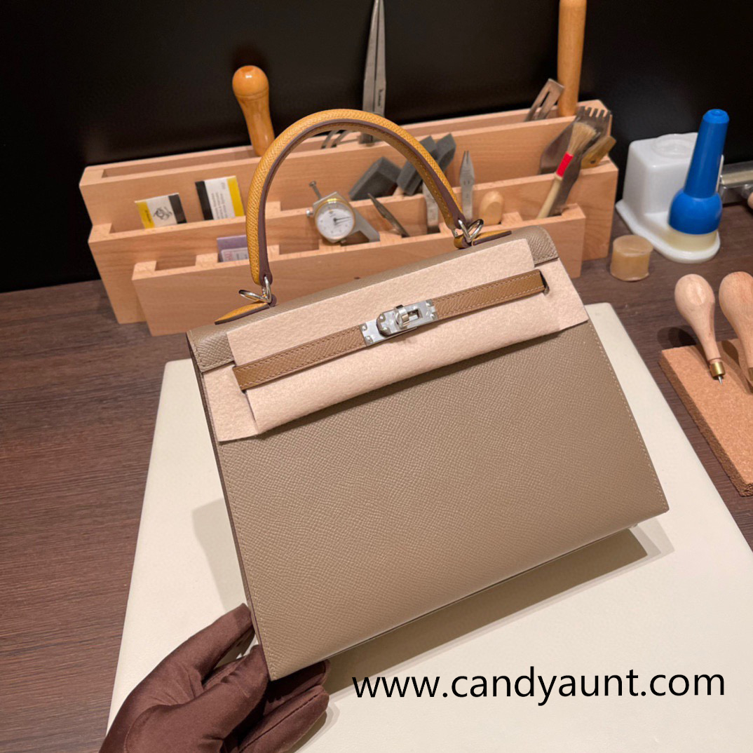 Hermes Kelly 25cm sellier swift Q1 /Sauge Gold Hardware Full Handmade 049