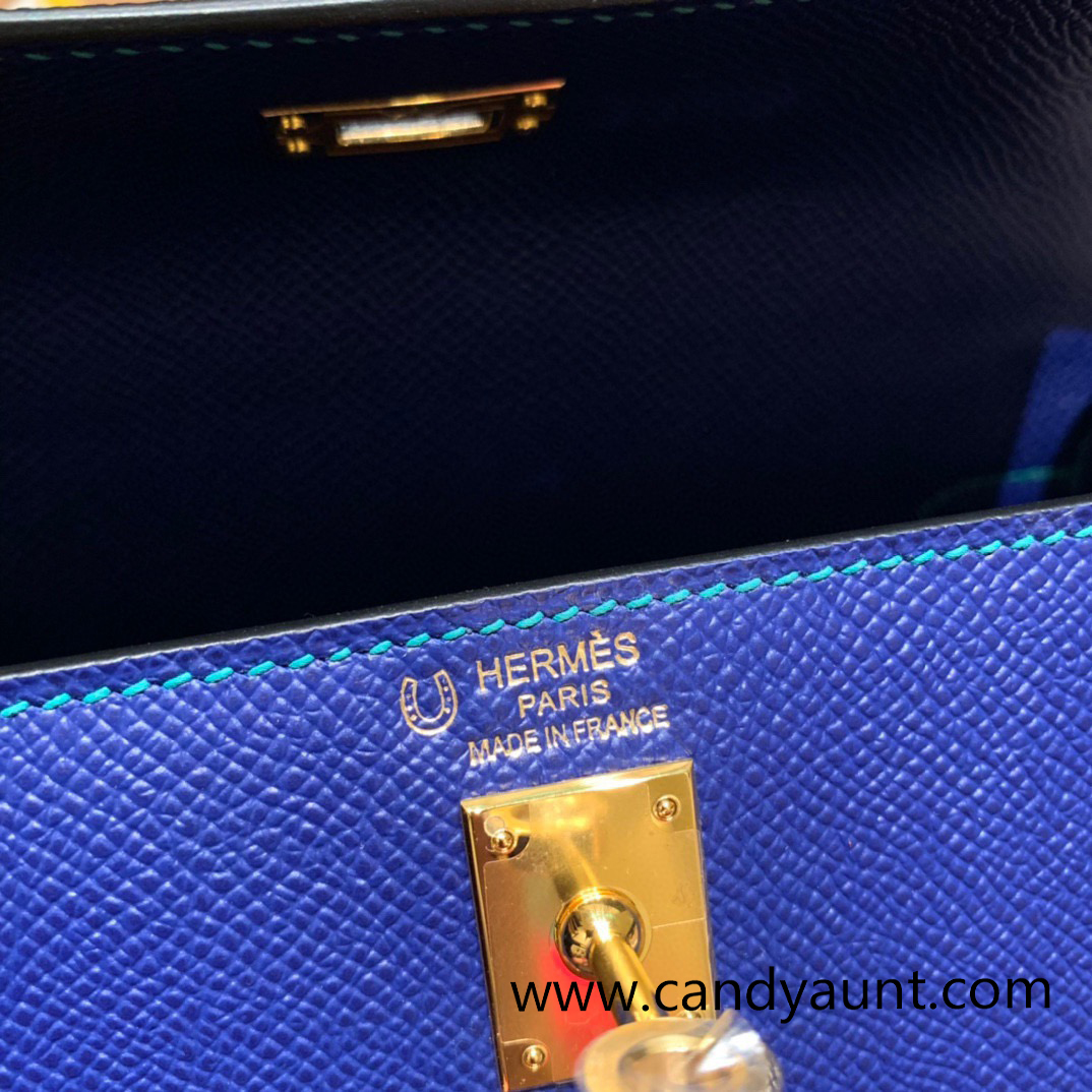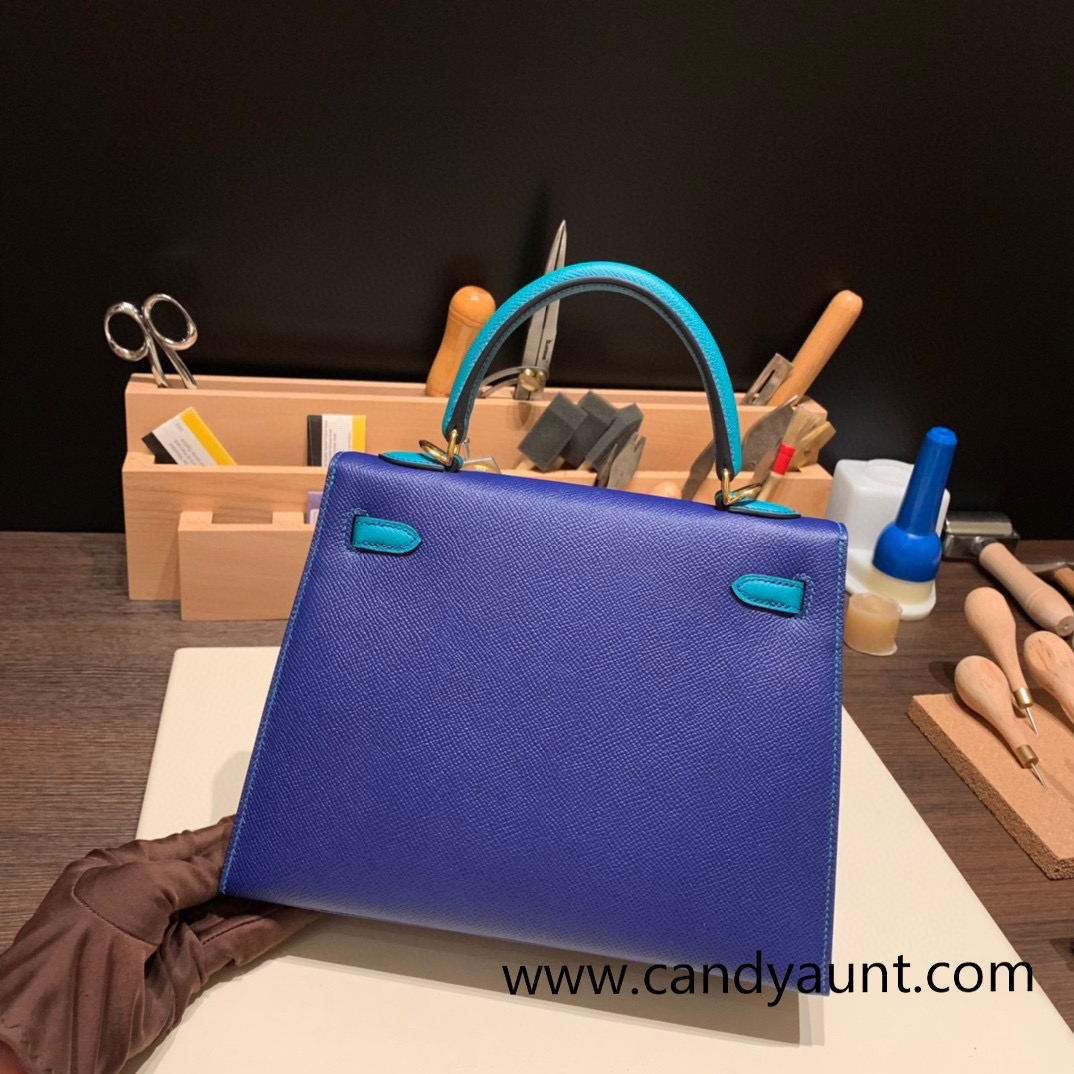 Hermes Kelly 25cm sellier Epsom touch 7T /Blue Electric & 7F /Blue Paon Gold Hardware Full Handmade 063