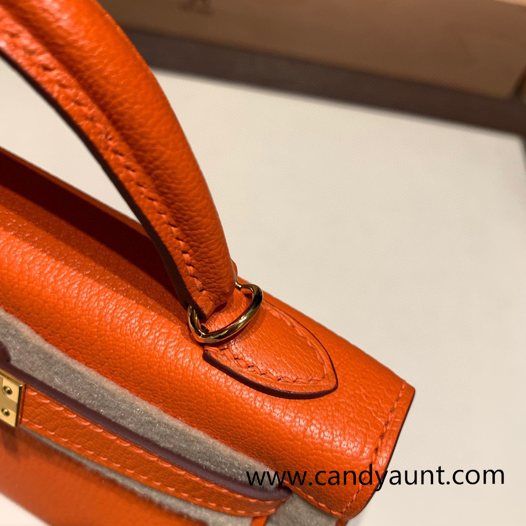 Hermes kelly20 chevre 19cm93 /Orange Gold Hardware Full Handmade kellymini-035