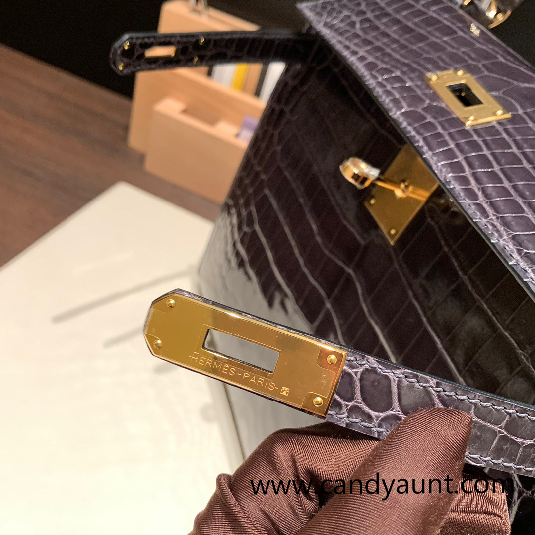 Hermes Kelly 32cm Crocodile Niloticus 88/ Graphite Gold Hardware Full Handmade