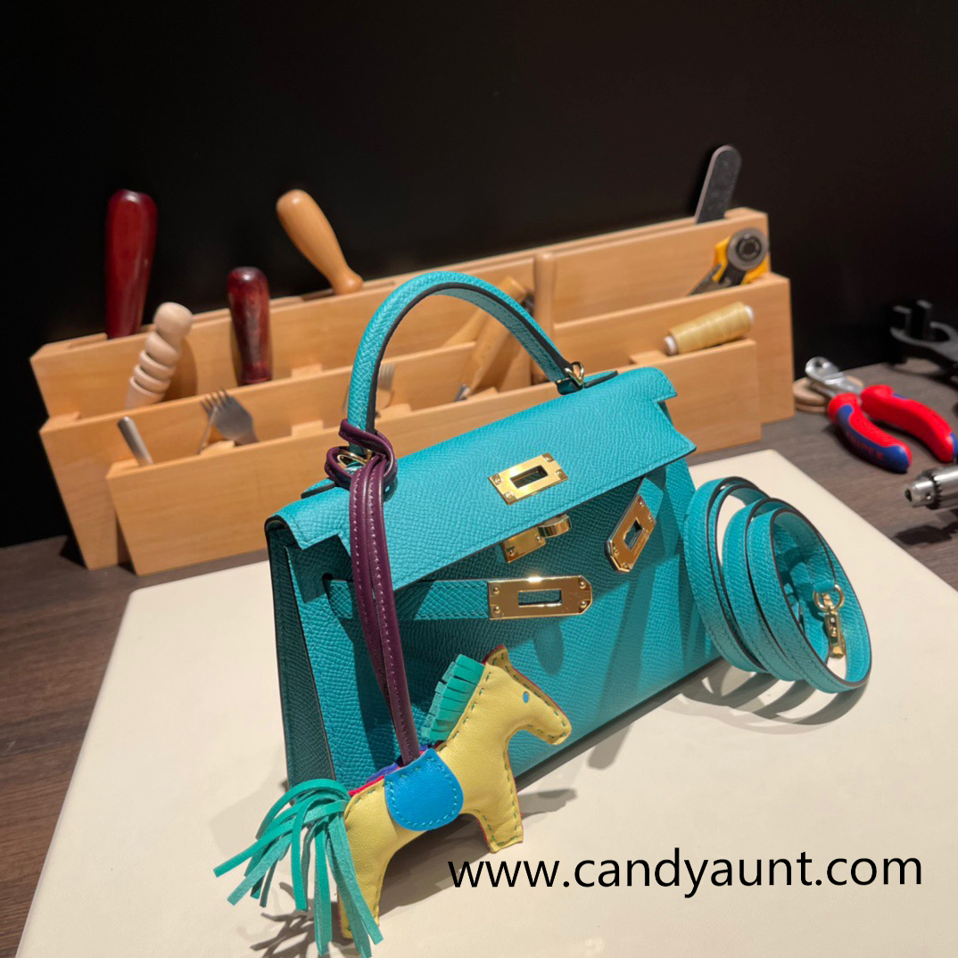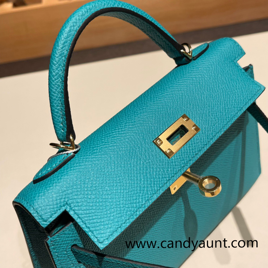 Hermes kelly20 epsom19cm 7F/ Blue Paon Gold Hardware Full Handmade kellymini-060
