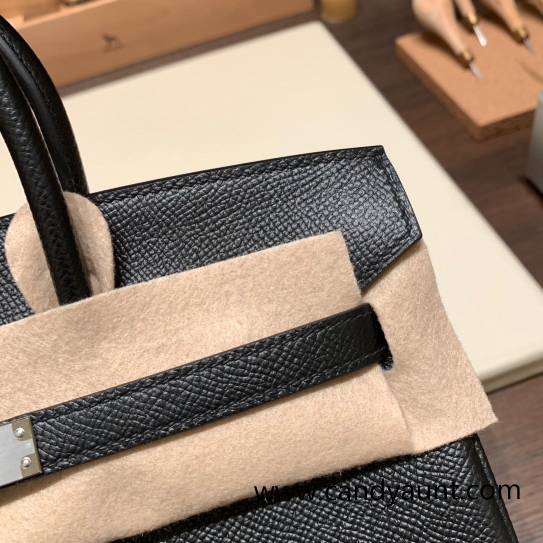 Hermes Birkin 25cm Epsom 89/ Black Silver Hardware Full Handmade 043