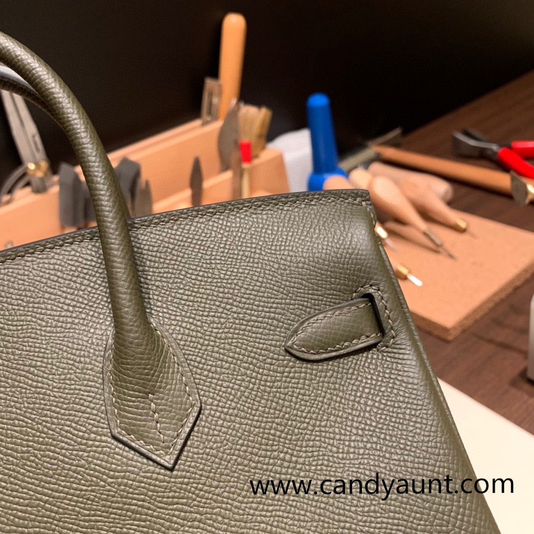Hermes Birkin 25cm Epsom C6 /Vert Gris Silver Hardware Full Handmade 047