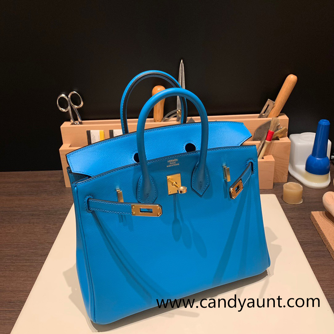 Hermes Birkin 25cm swift 0F /Blue Frida Gold Hardware Full Handmade 084