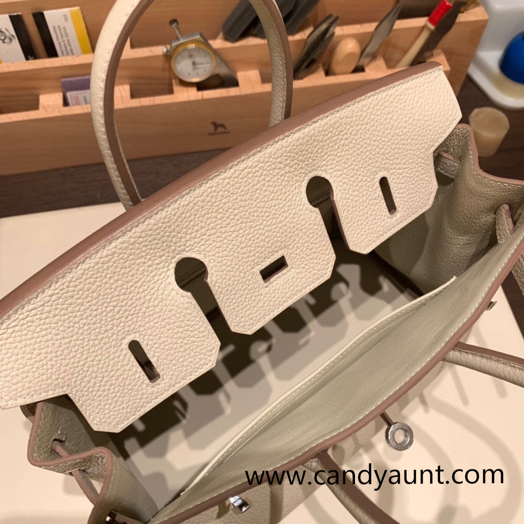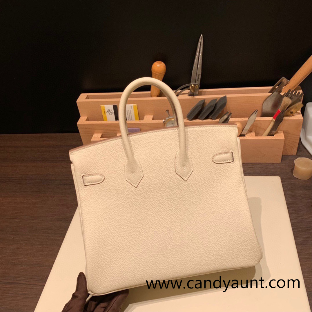 Hermes Birkin 25cm togo 10 /Craie Silver Hardware Full Handmade 095