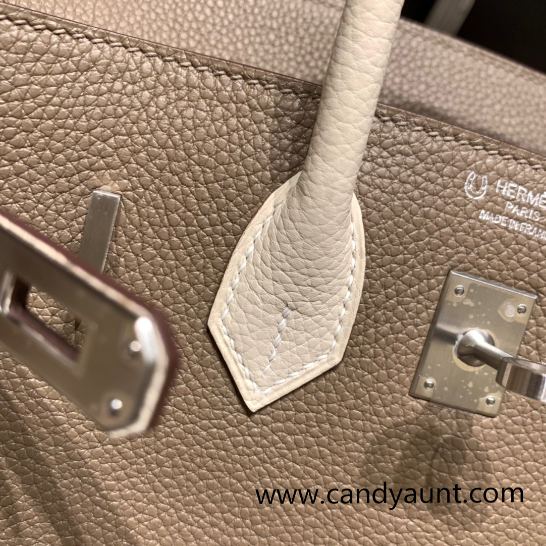 Hermes Birkin 25cm togo 10/ Craie & Étoupe Grey Silver Hardware Full Handmade 145