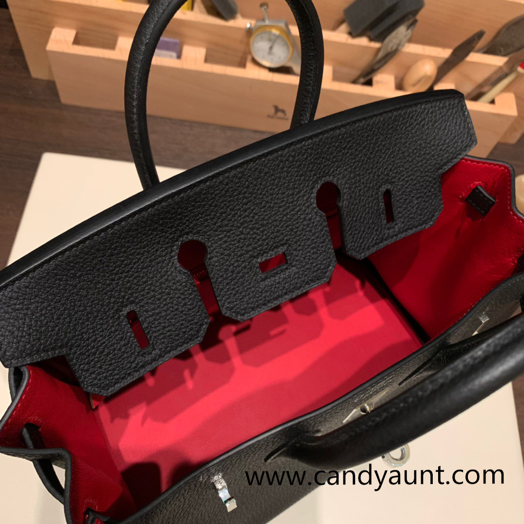 Hermes Birkin 25cm togo 89 /Black (Noir) Silver Hardware Full Handmade 154