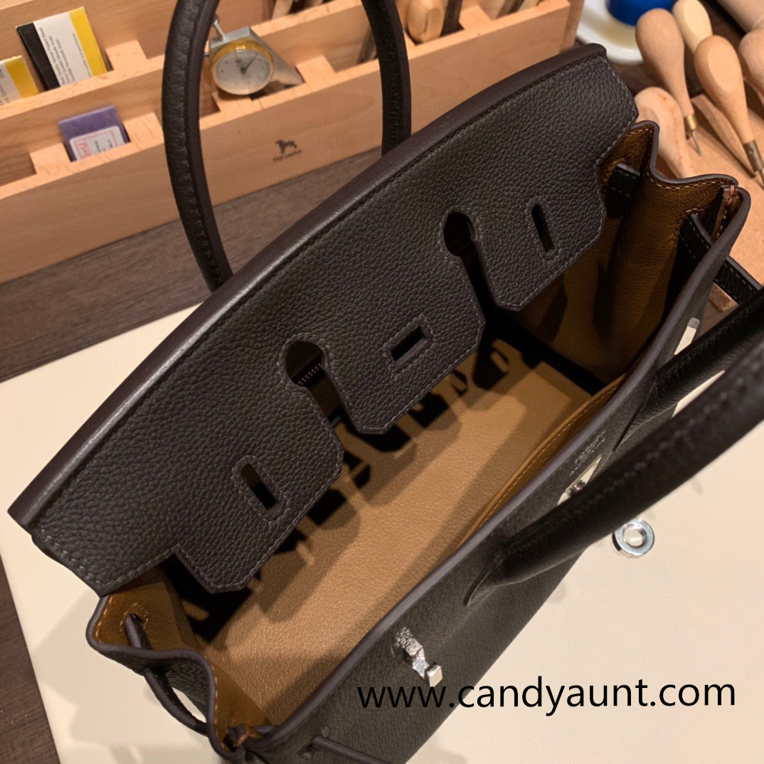 Hermes Birkin 25cm togo 37/Gold & 46 /Ebene Silver Hardware Full Handmade 160