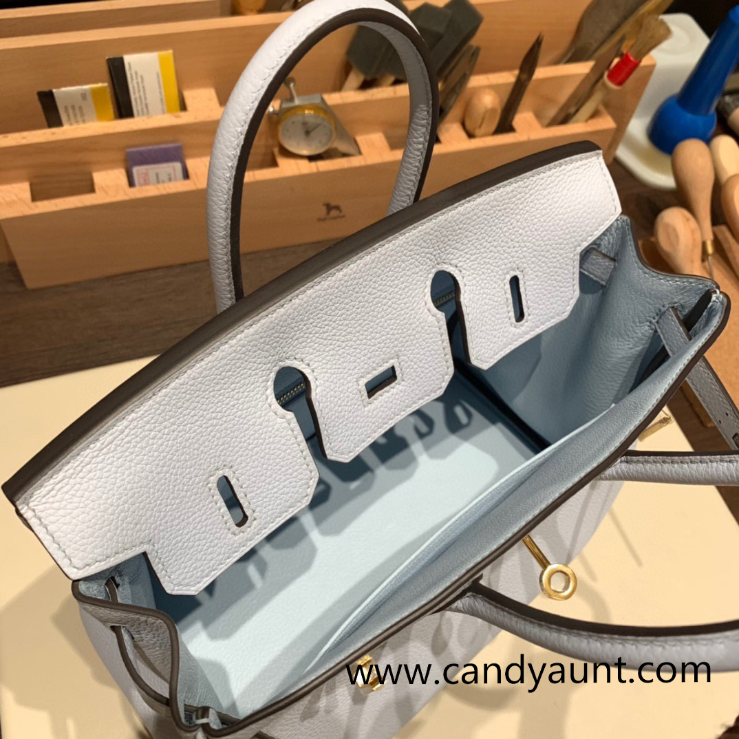 Hermes Birkin 25cm togo 7R /Azur Gold Hardware Full Handmade 163
