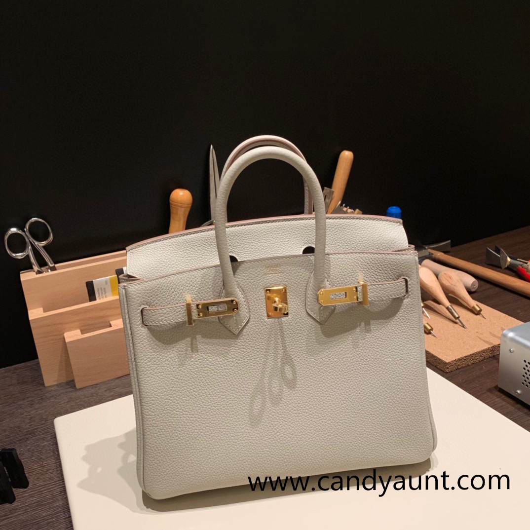 Hermes Birkin 25cm togo 80/Pearl Grey Gold Hardware Full Handmade 167