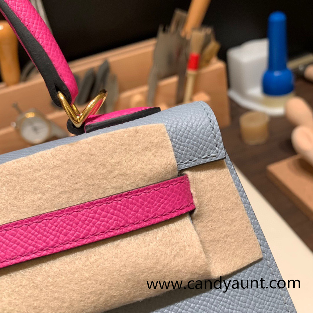 Hermes Kelly 25cm sellier Epsom touch J7 /Blue Lin& 9I/ Magnolia Gold Hardware Full Handmade 057
