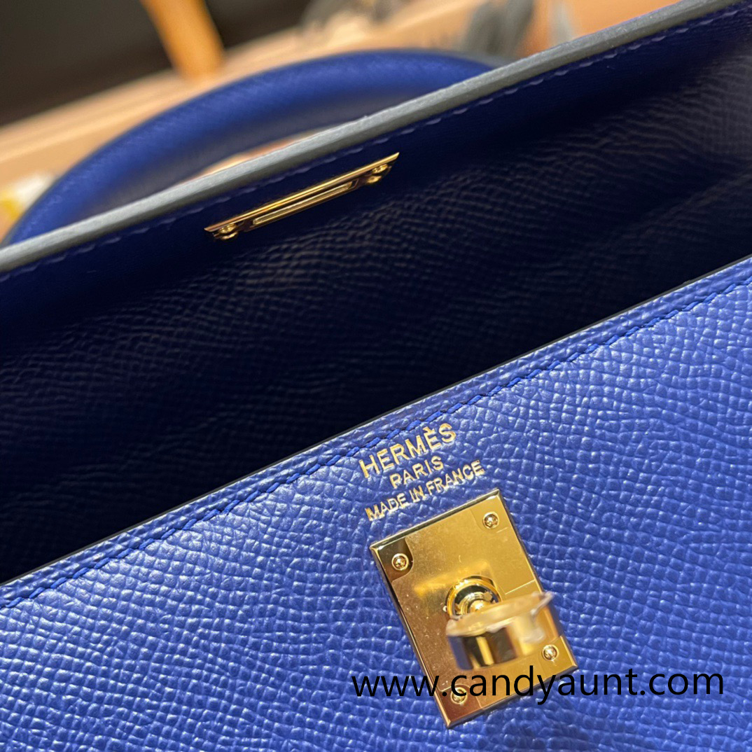 Hermes Kelly 25cm sellier Epsom 7T /Blue Electric Gold Hardware Full Handmade 087