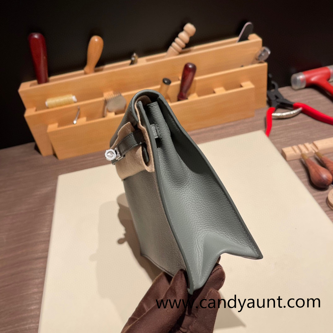 Hermes Kelly danse evercolor 63/Vert Amande Silver Hardware