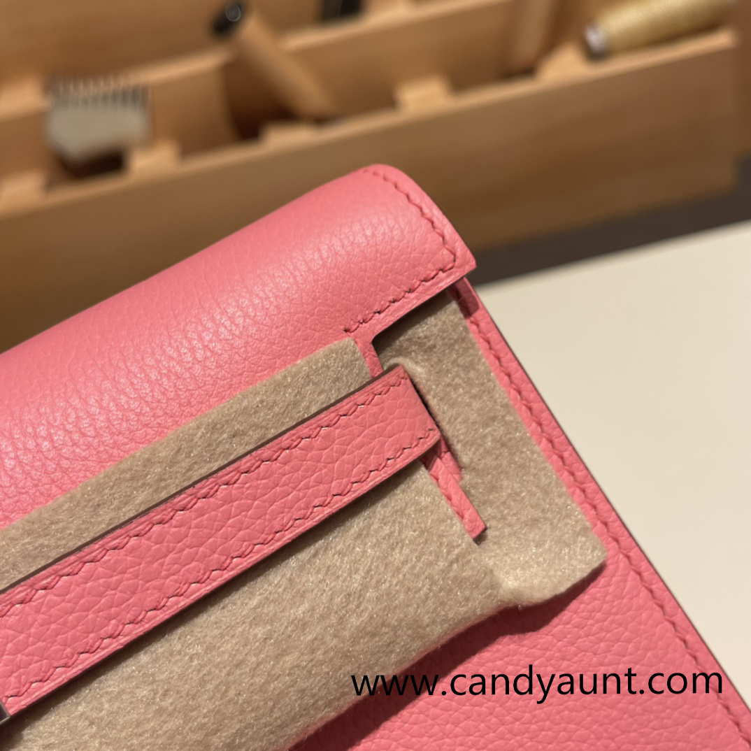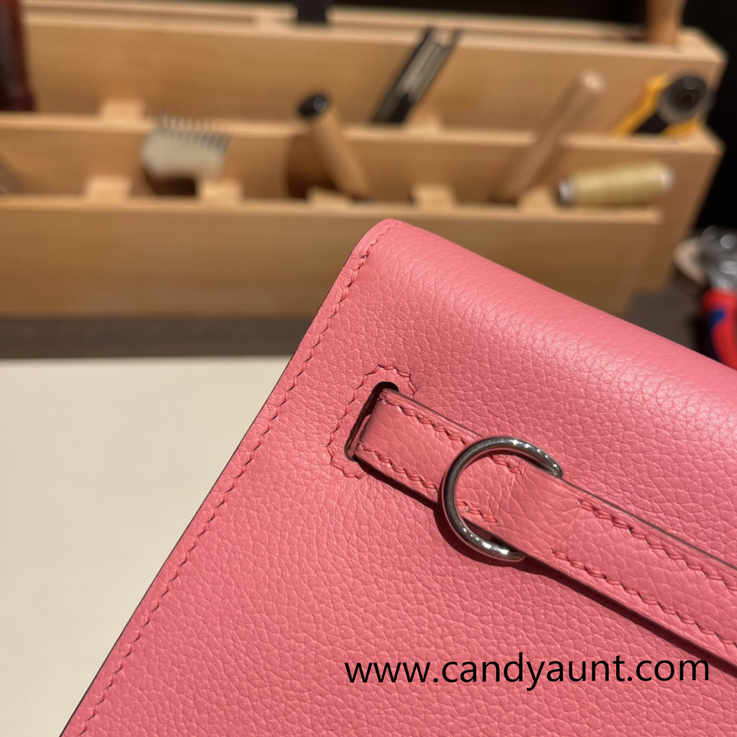 Hermes Kelly danse Evercolor 8W /Rose Azalee Silver Hardware